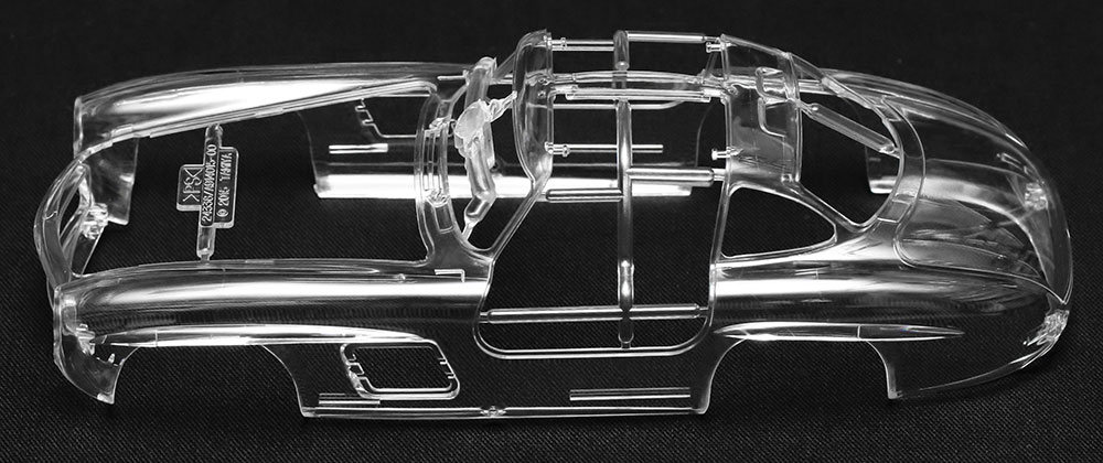 Le kit modèle en plastique Tamiya à l’échelle 1/24 de la Mercedes-Benz 300SL Full-view est une réédition modifiée de la sortie initiale de 2015 (no 24338). Comparé au numéro d’origine, il semble que la seule différence soit que les panneaux de carrosserie sont désormais moulés en styrène cristallin, et je parle bien de cristallin. Pour ceux qui souhaitent le construire ainsi, il n’y aura pratiquement aucun travail de préparation nécessaire sur le corps. Les joints de moulage sont presque invisibles, ce qui témoigne de la qualité des moules de Tamiya.
