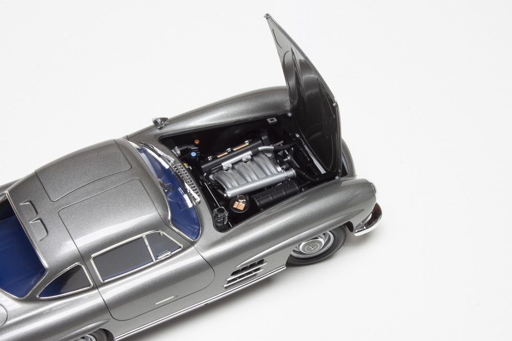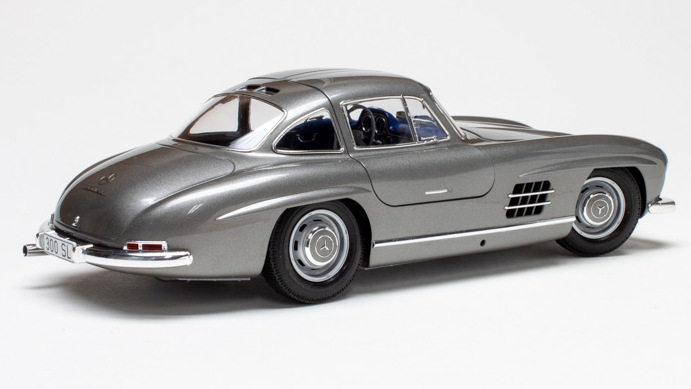La 300 SL a été lancée en 1954, la version de série d’un prototype de course très réussi de 1952. Il présentait une carrosserie élégante avec des portes ailerettes en mouette, ainsi qu’un cadre spatial léger multi-tubulaire. Un moteur 6 cylindres en ligne de 3 litres a été pionnier de l’injection directe de carburant. Sa combinaison d’apparence et de puissance pionnière en fait un favori même aujourd’hui, et vous pouvez voir ce qui le fait vibrer avec cette version spéciale « vue complète » du modèle.