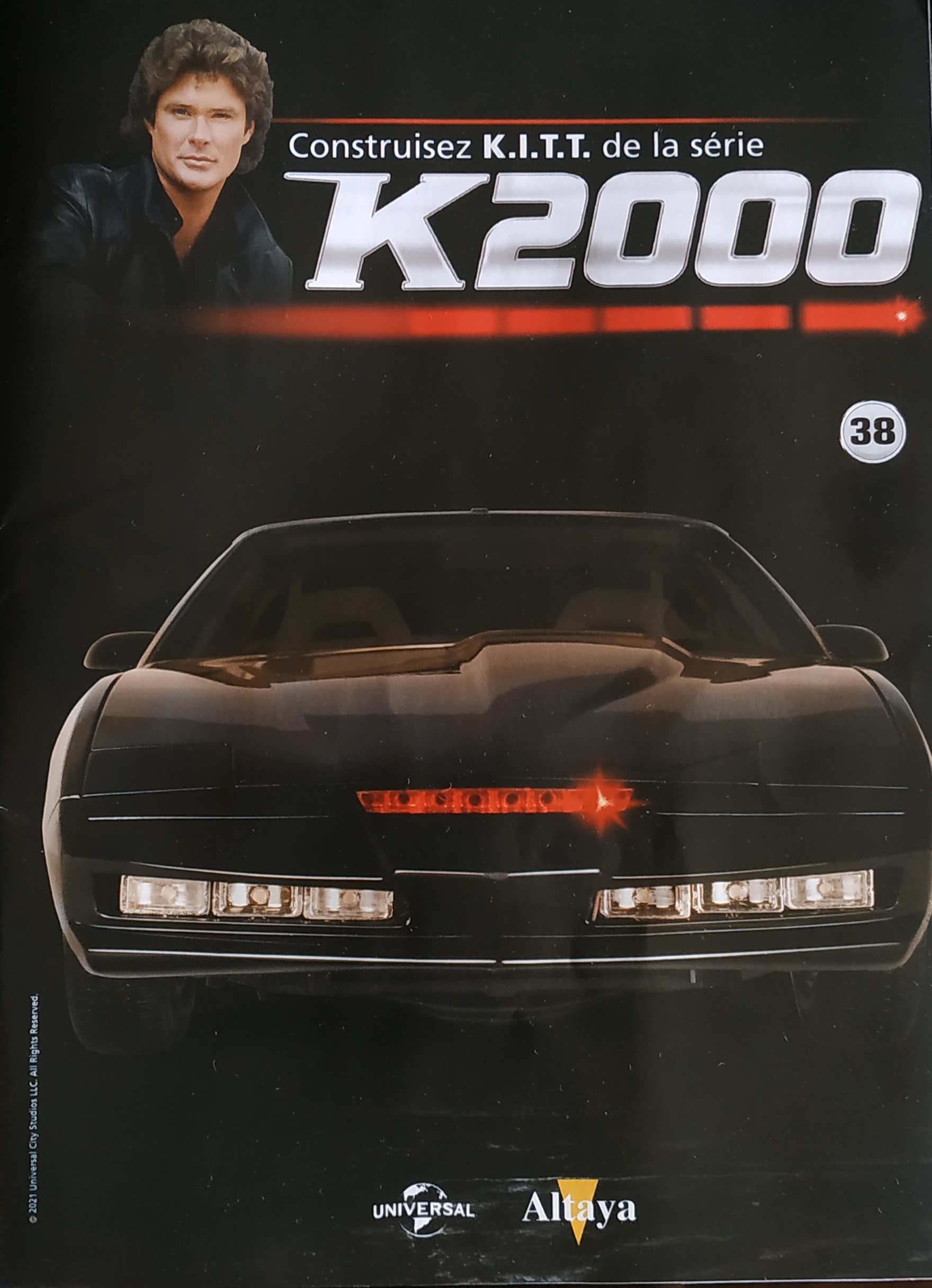 Le numéro 38 inclue les éléments pour le montage du disque de frein et de la suspension arrière droite : base du bras de suspension inférieur, bras de suspension inférieur droit, corps cylindrique de la jambe de suspension droite, jambe de suspension droite, base du corps cylindrique droit, base du disque de frein, arrivée de liquide de frein, disque de frein.