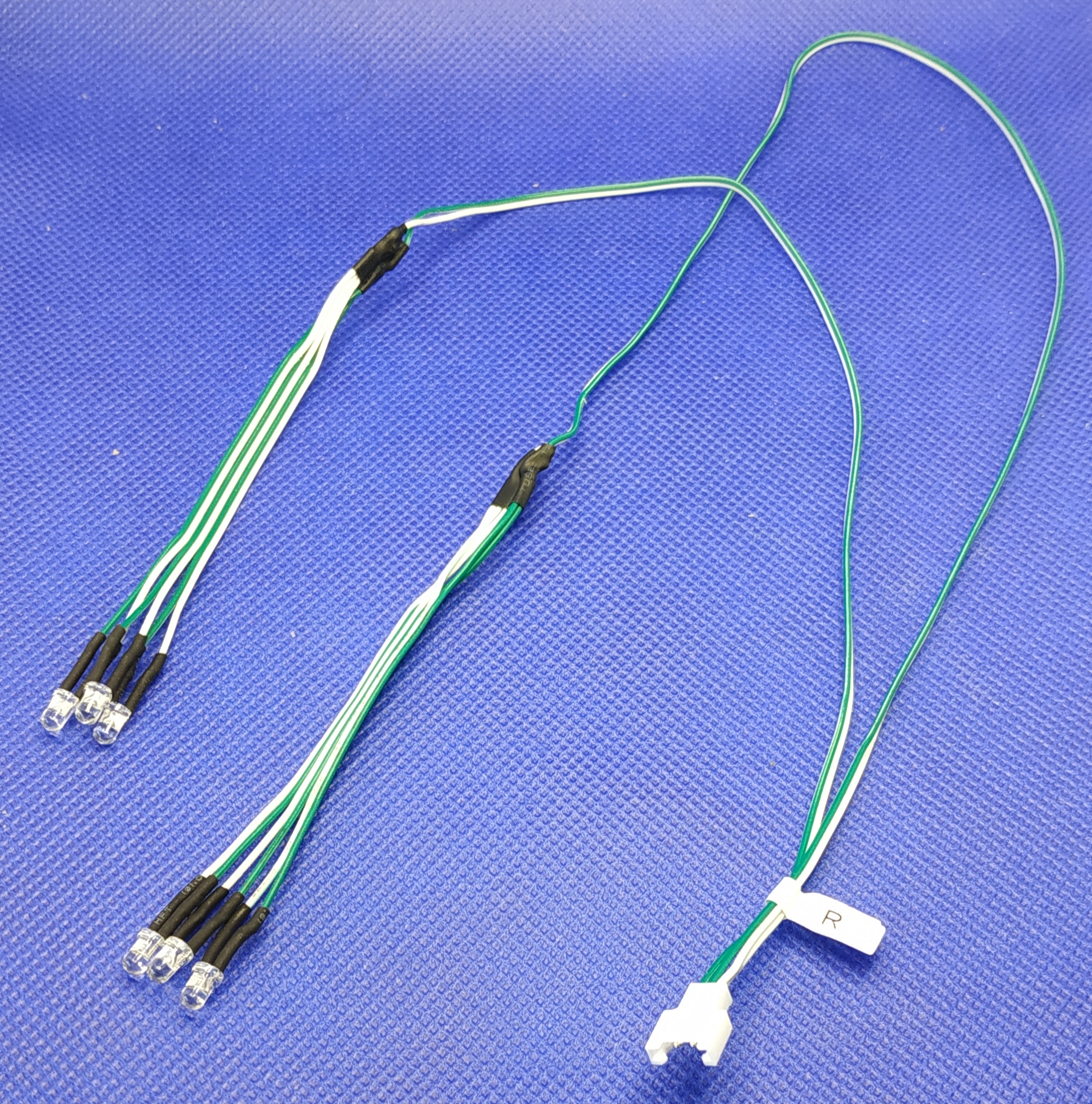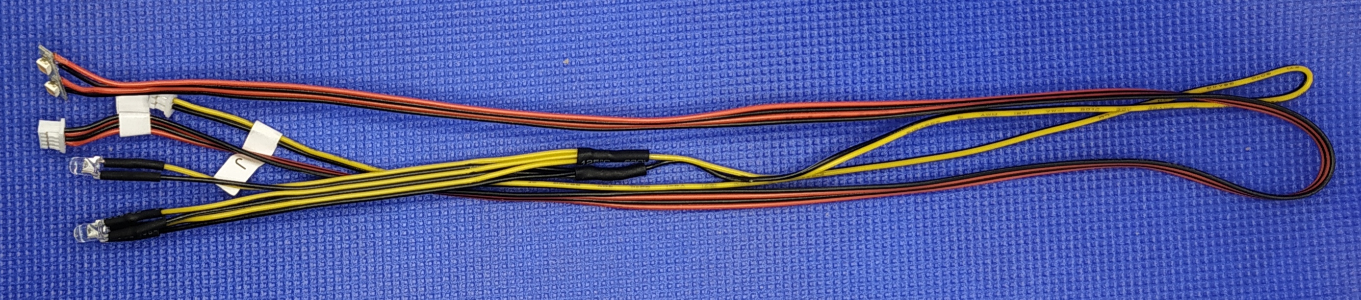 Le numéro 43 inclue les éléments pour le montage des câbles des lumières extérieures et intérieures : câble avec feux avant supérieurs, moteur électrique avec câble, câble de moteur électrique, câble avec lampe du plafonnier lumineux (avant), câble du plafonnier avant, câble avec lampe du plafonnier lumineux (milieu), câble du plafonnier du milieu, câble avec feux arrière, câble des feux arrière, câble avec feu de plaque d'immatriculation arrière, câble d'éclairage de plaque d'immatriculation arrière, attaches de câbles, bandes adhésives de fixation des câbles.
