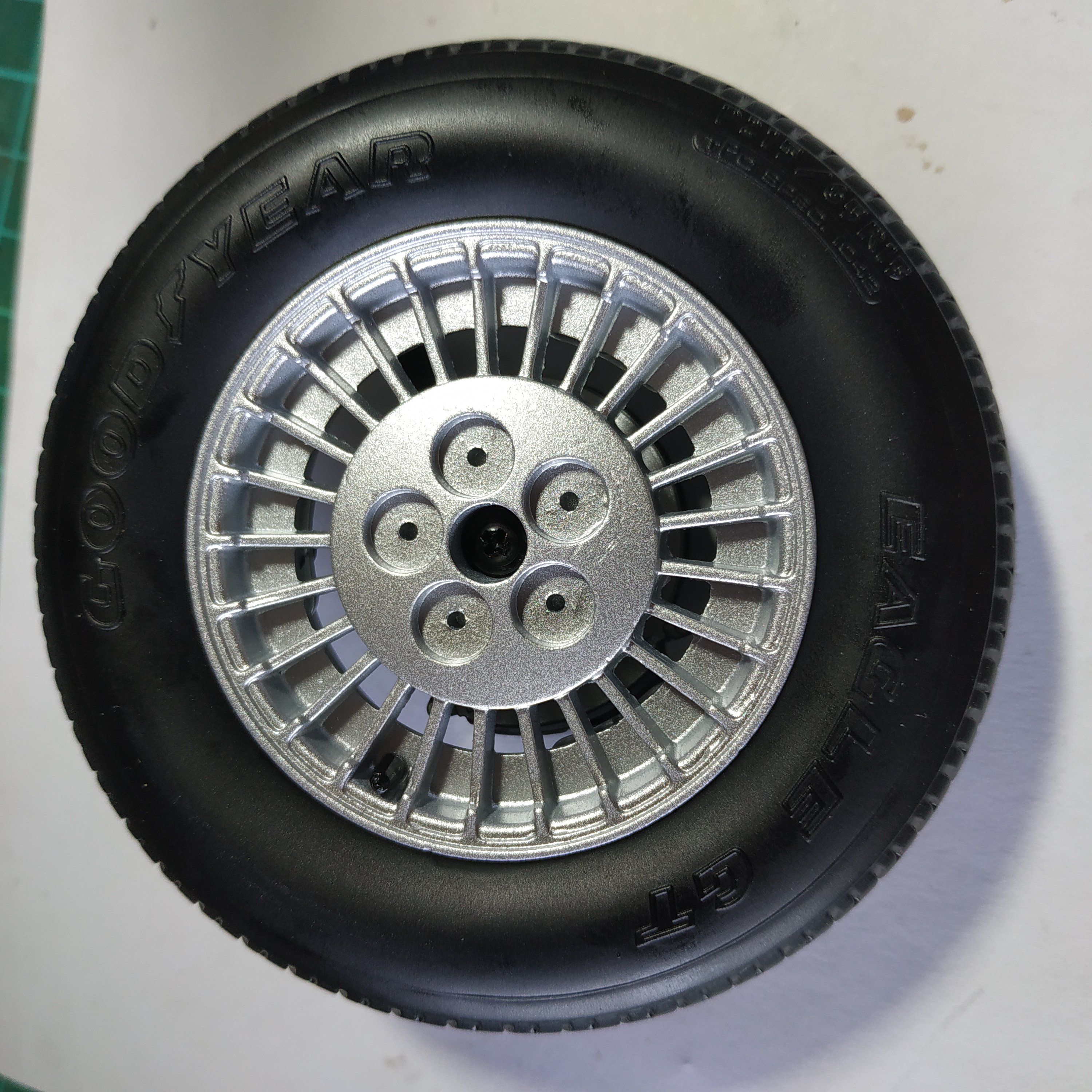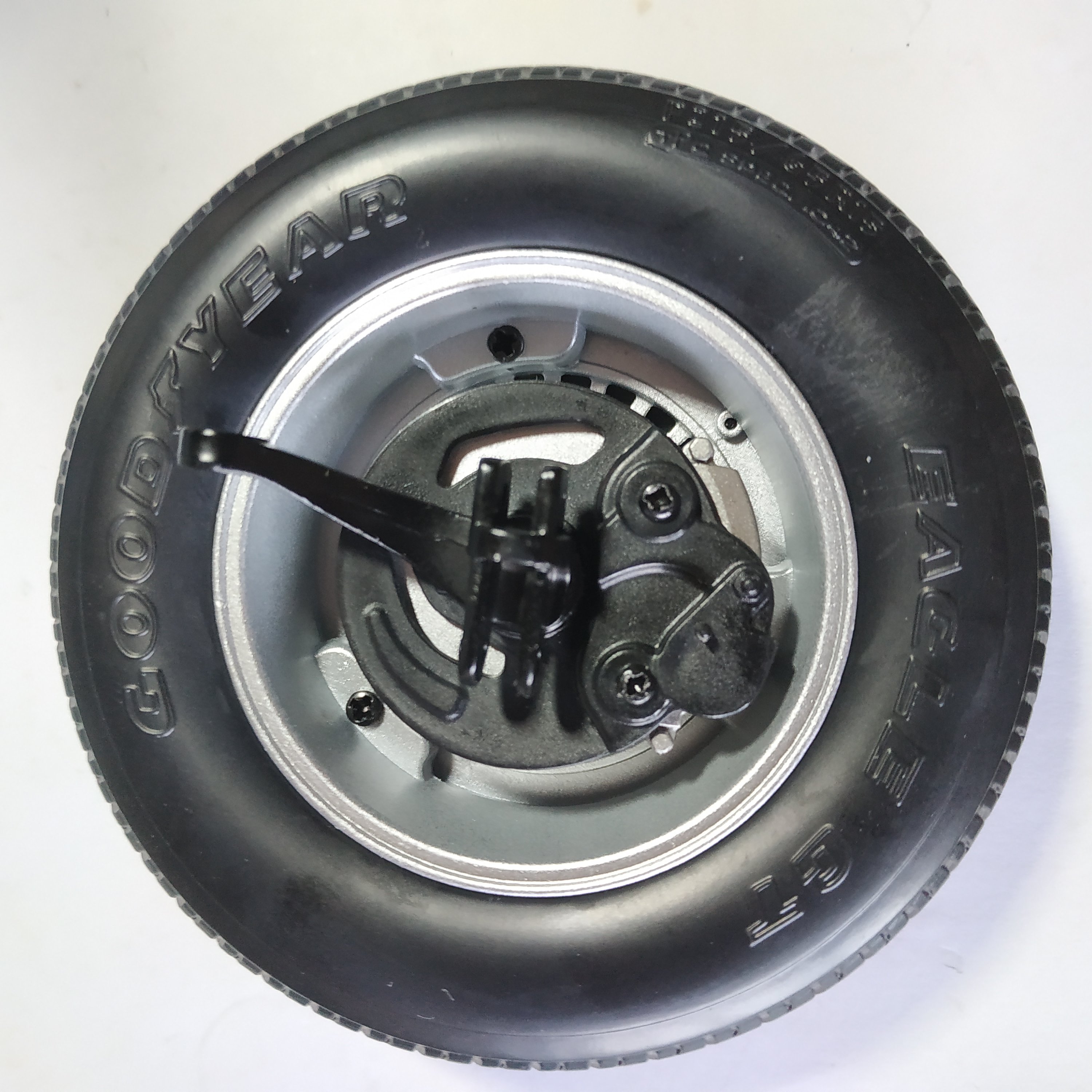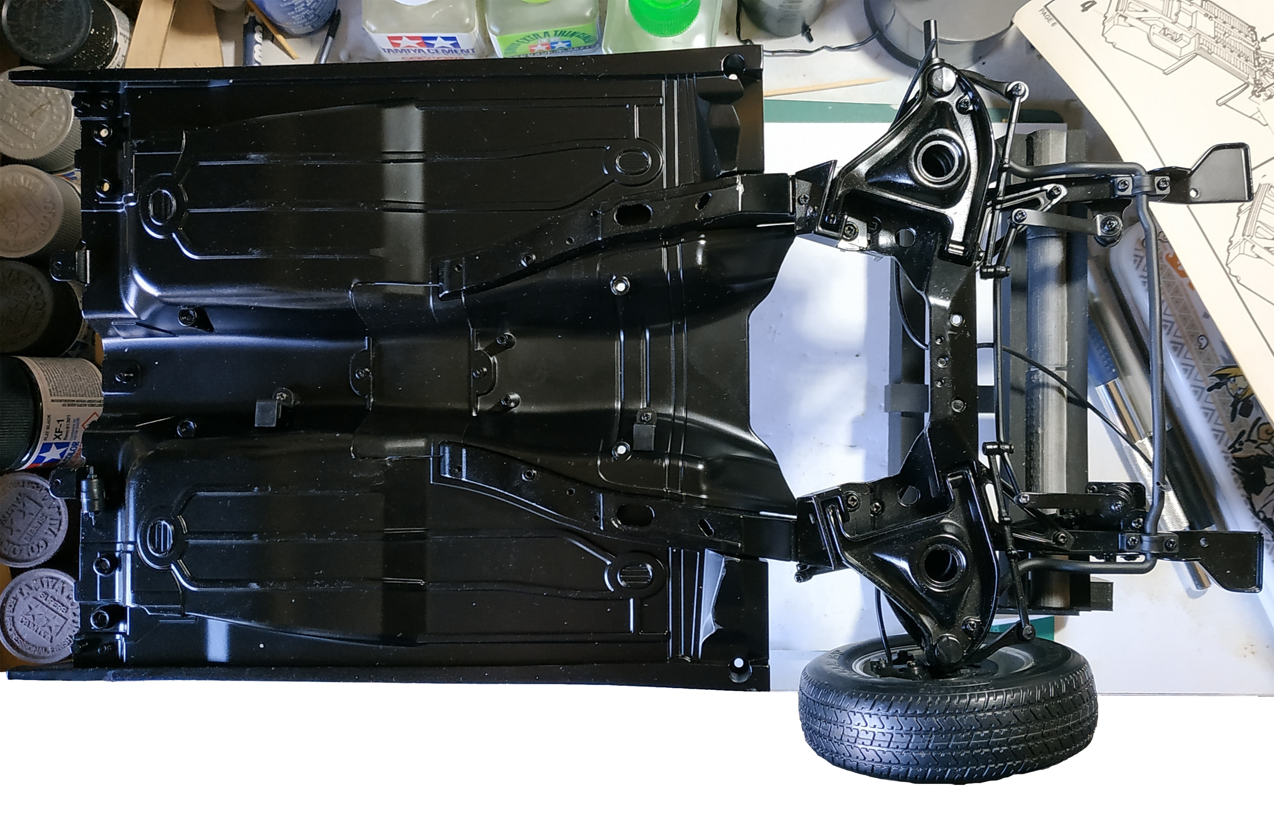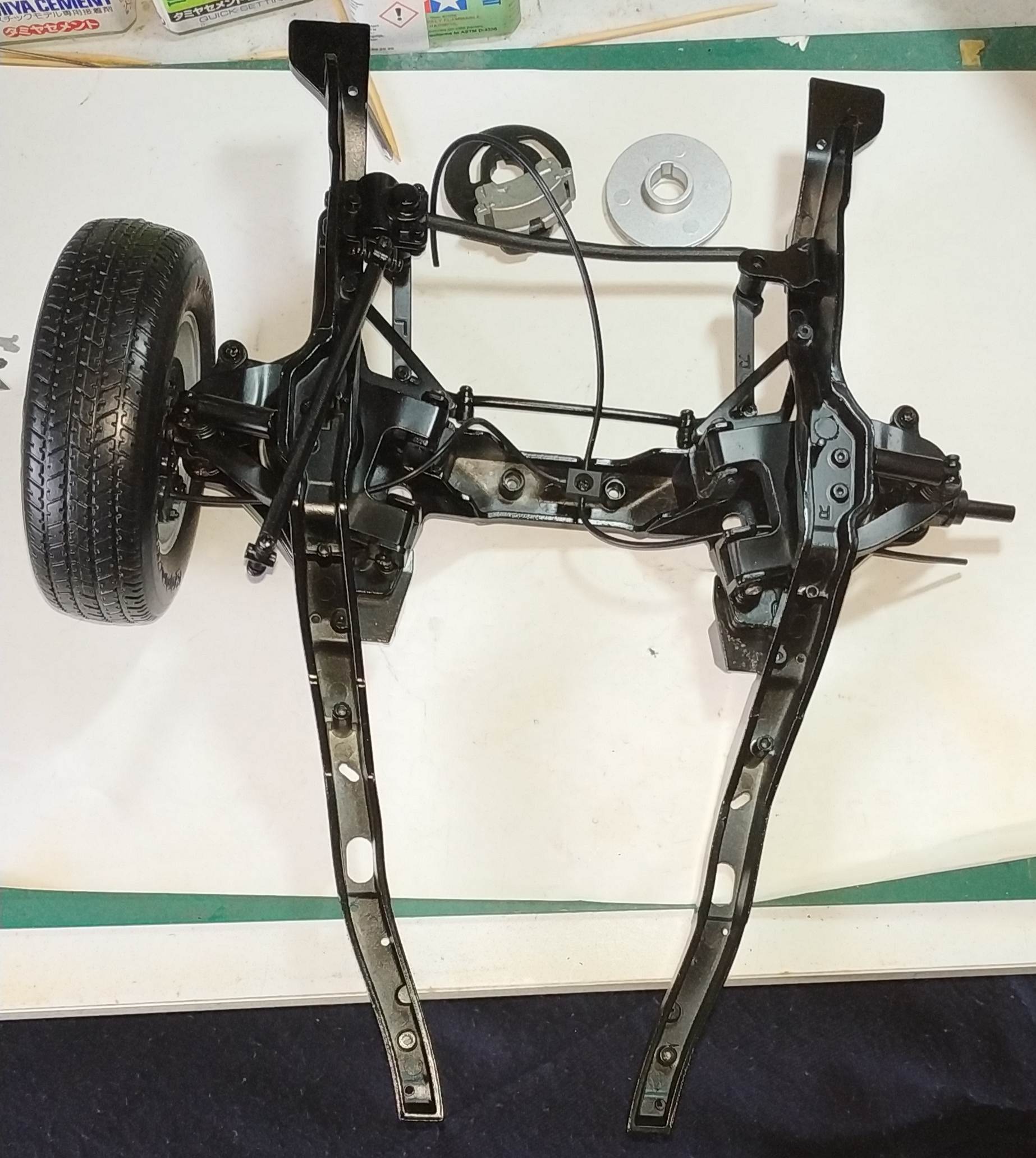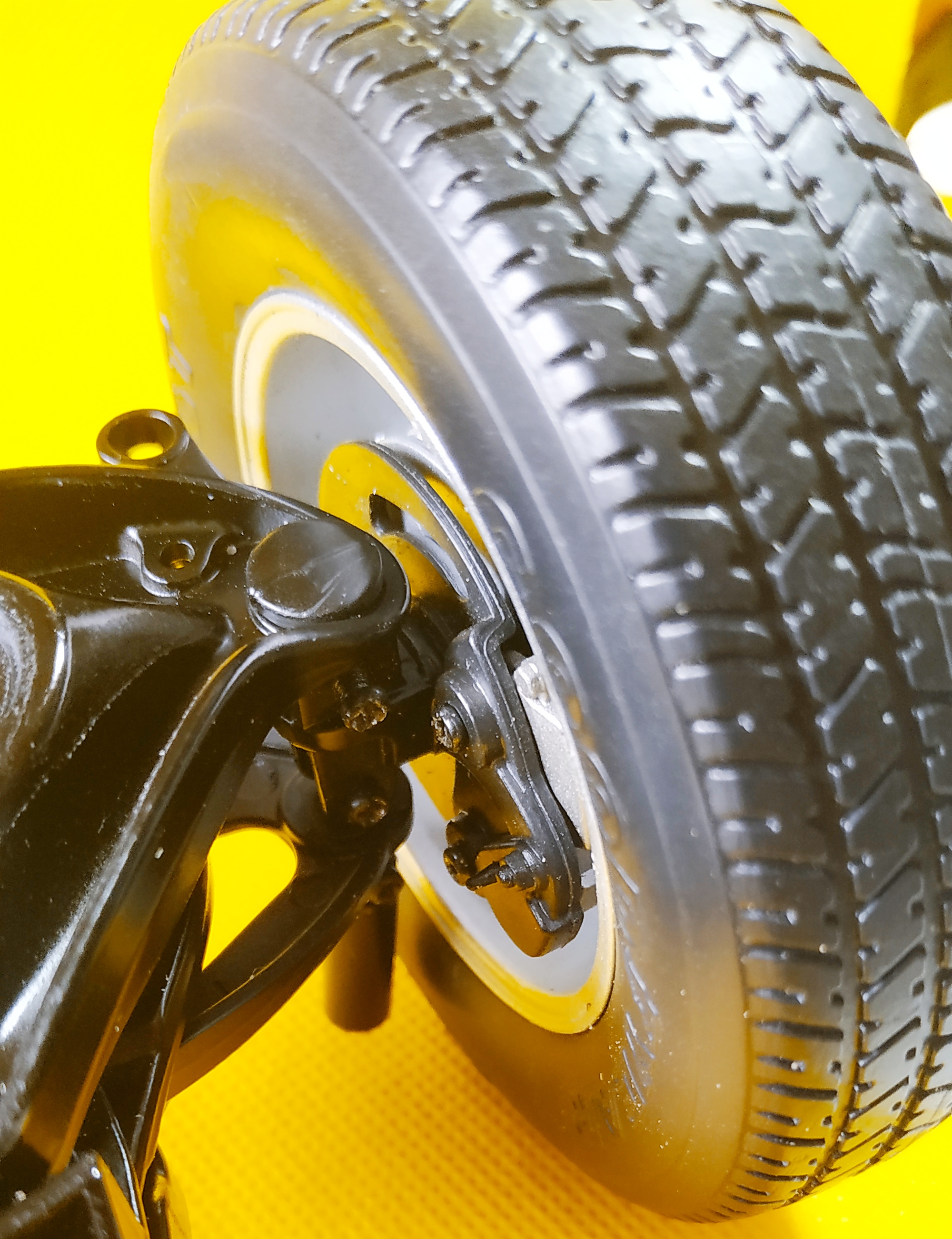 Le numéro 3 inclue les éléments pour le montage de la roue avant gauche : pneu avant gauche, jantes intérieure et extérieure avant gauches, support d'étrier de frein avant gauche, enjoliveur roue avant gauche, disque de frein avant gauche, fusée de roue avant gauche, étrier de frein avant gauche, rondelle.