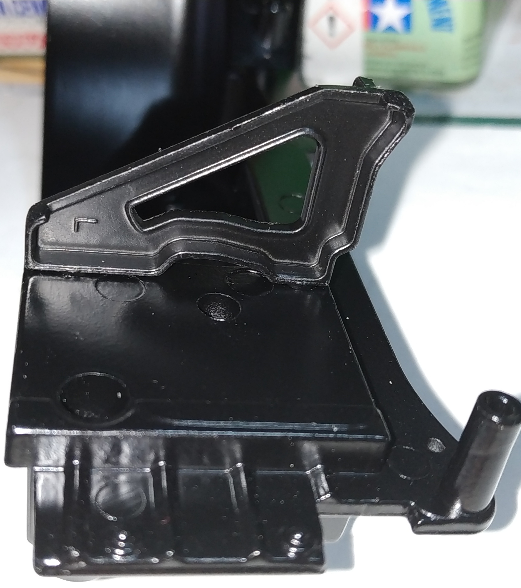Les 2 photos précédentes représentent l'étape 1 du numéro 11. Cette étape a l'air très facile à effectuer mais il faut bien mettre la pièce (couvercle) en place afin de pouvoir la fixer. Dans mon cas, il y a un jour autre de la pièce vissée. Je ne sais pas si je dois le laisser ainsi ou coller la pièce à la cyano (superglue) pour supprimer le jour.