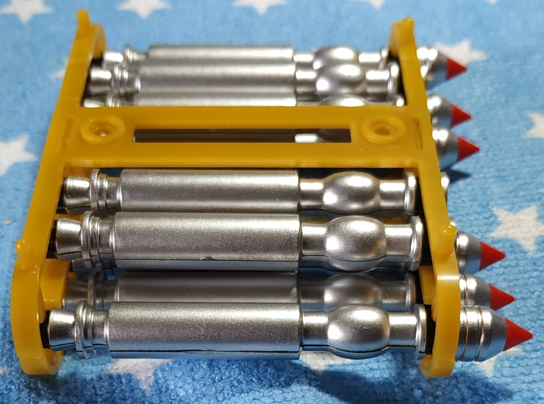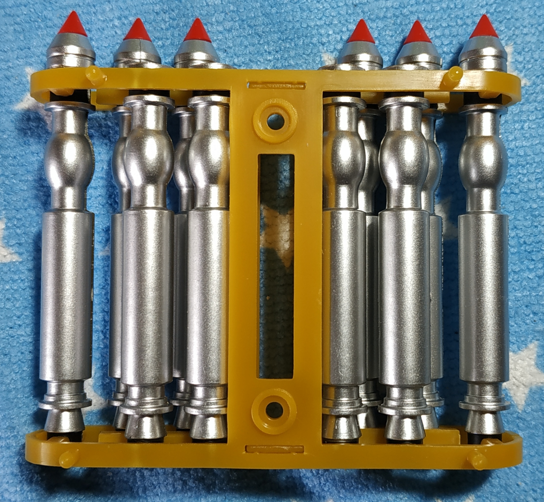 Les torpilles de la partie supérieure du râtelier s'assemblent sensiblement comme les précédentes et accueillent les ogives du numéro précédent.