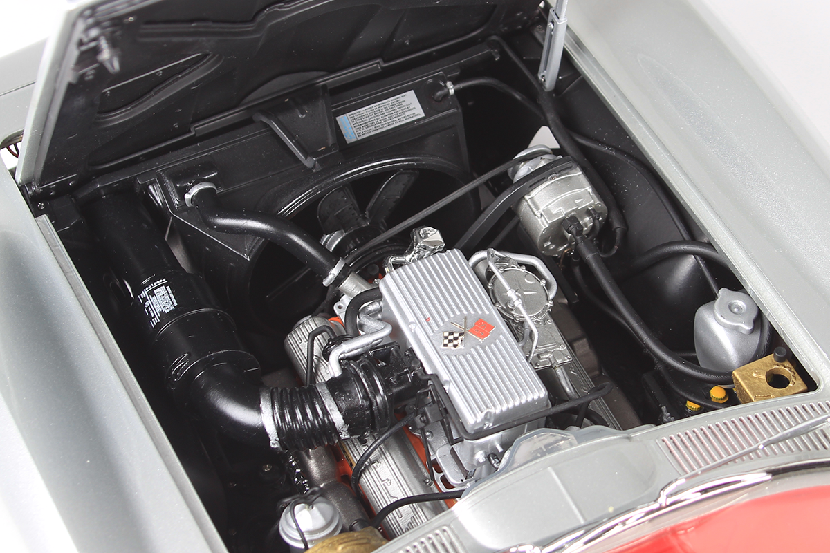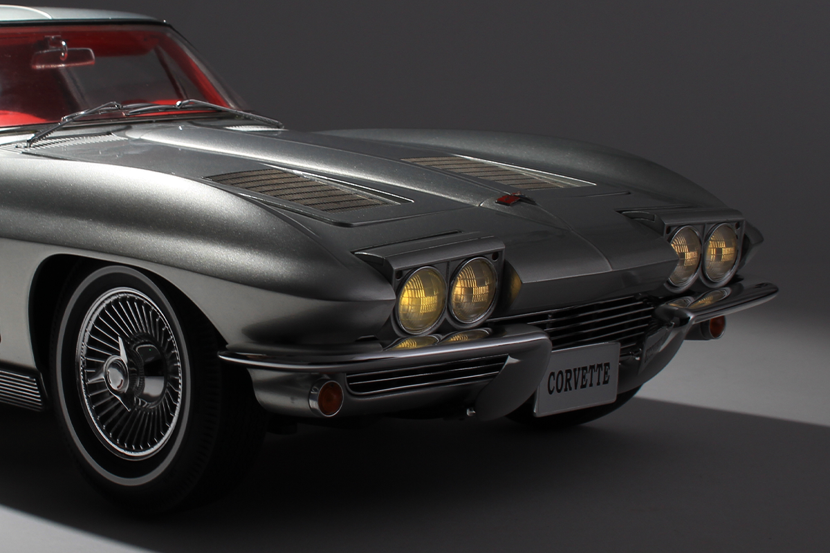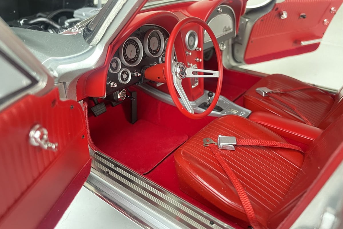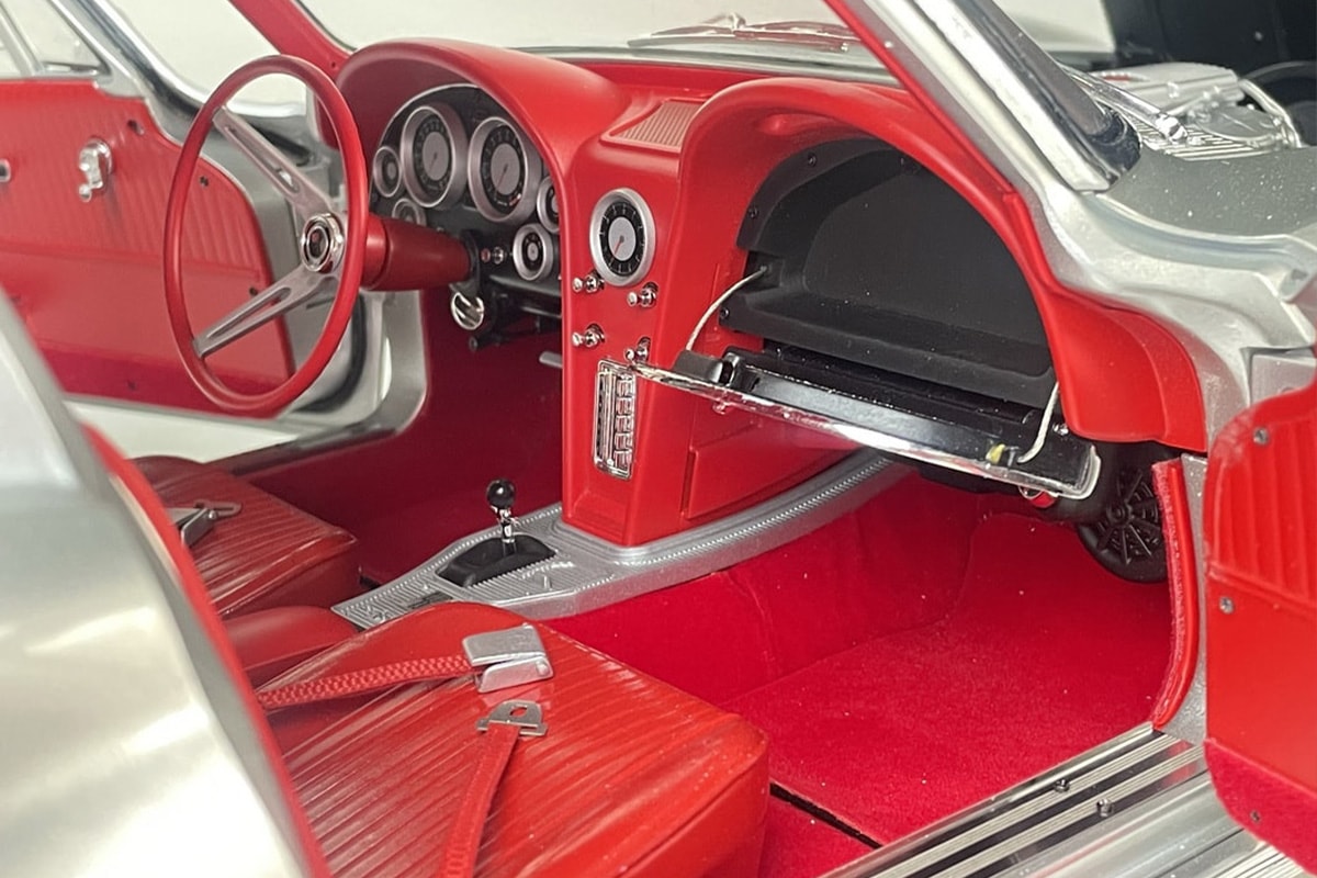 Avec sa finition argentée Sebring Silver, contrastant avec son intérieur rouge, la carrosserie magnifique et aérodynamique de la Corvette Sting Ray offre un design intemporel. Avec son long capot ventilé, magnifié par une ligne centrale surélevée, et sa lunette arrière en deux parties, ce modèle est immédiatement reconnaissable comme l’un des plus grands designs des années 1960. Sous le capot, le moteur V8 327 pouces cubes offre des performances à la hauteur de son allure. Vous avez désormais la possibilité de construire et posséder cette voiture de sport d’une grande rareté.
