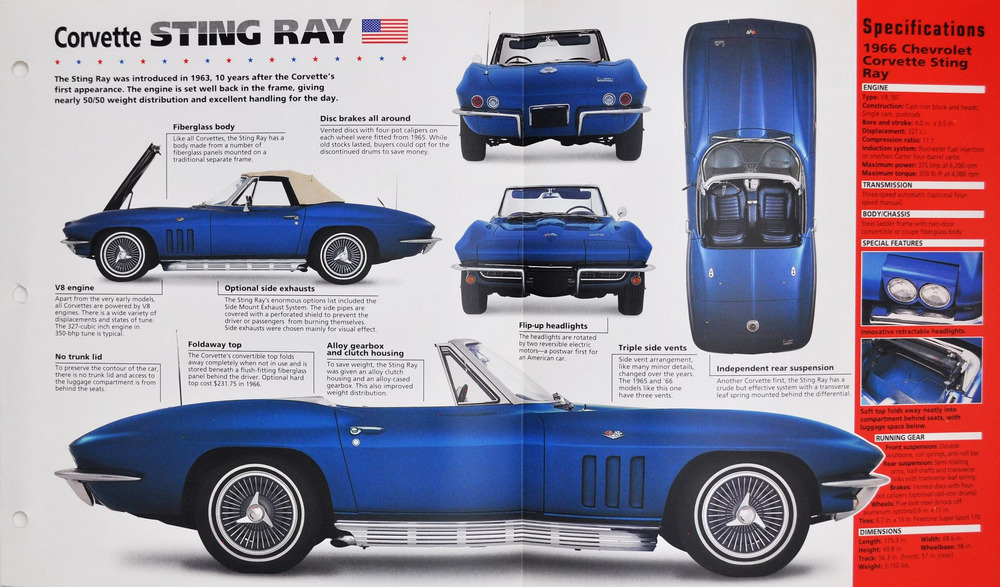 | 1966 | 27'720 | 4'084$ | V8 Big Block 427 avec capot bombé unique ; V8 petit bloc 327 de 304ch (224kW) de série. |