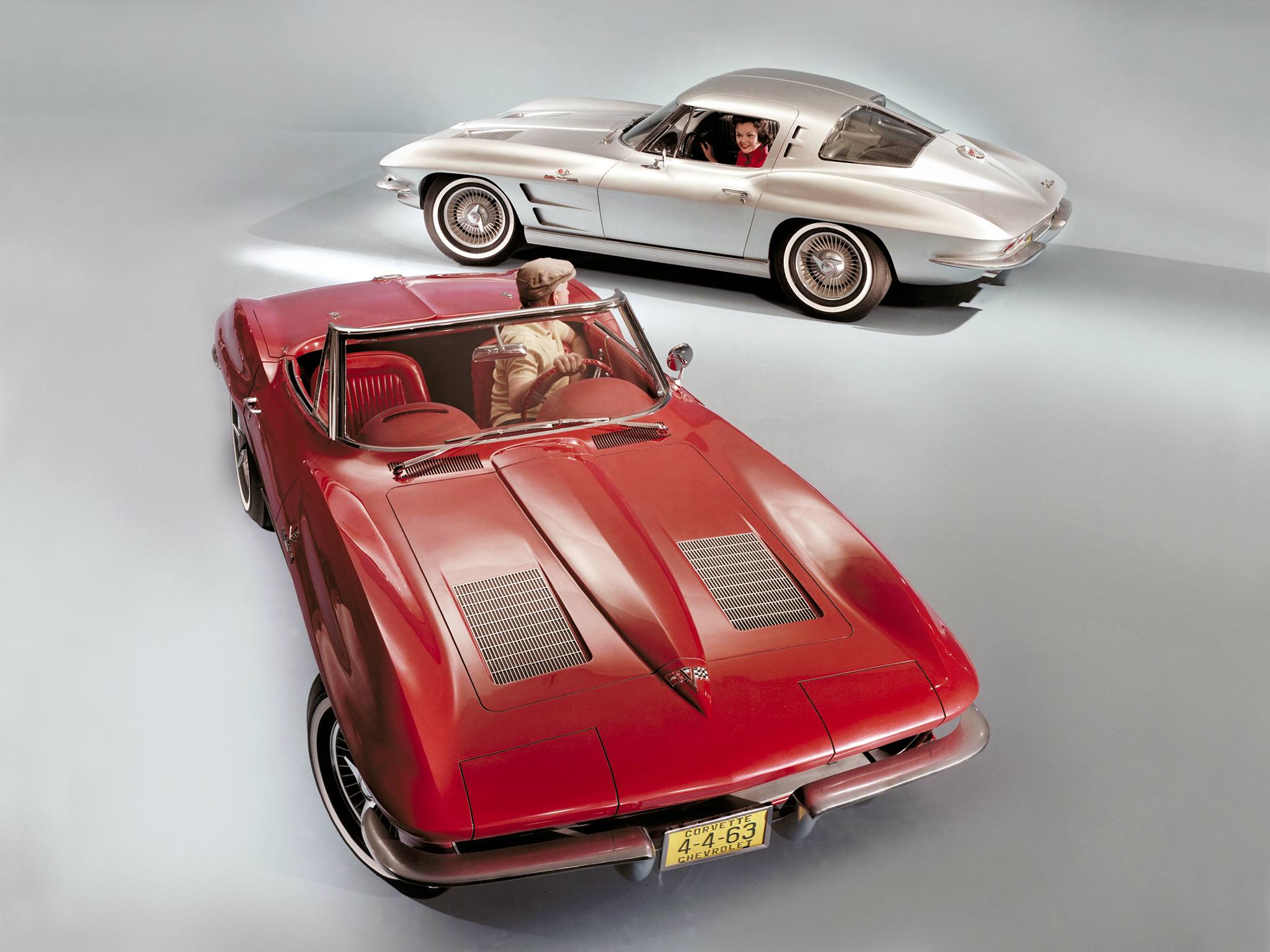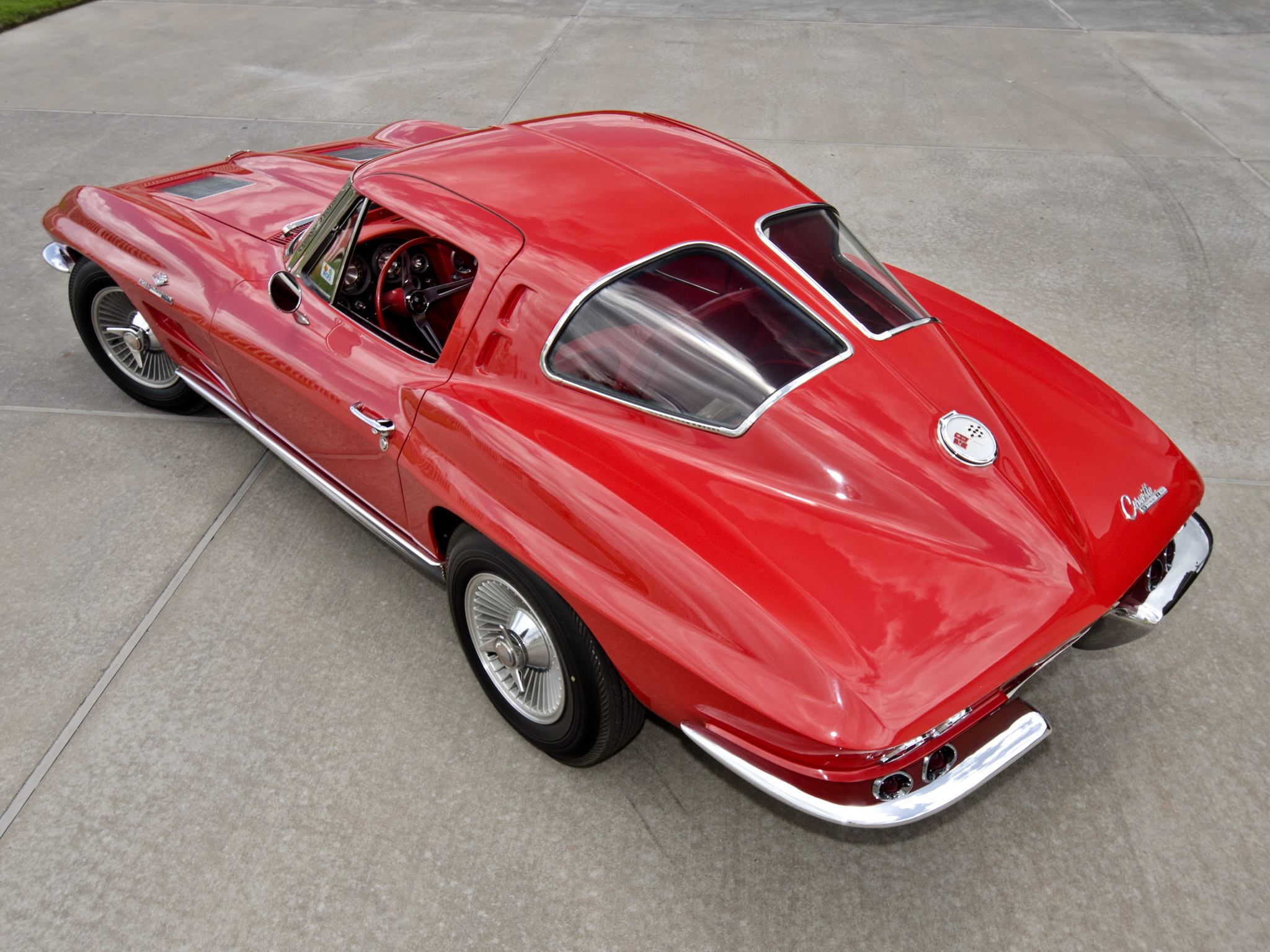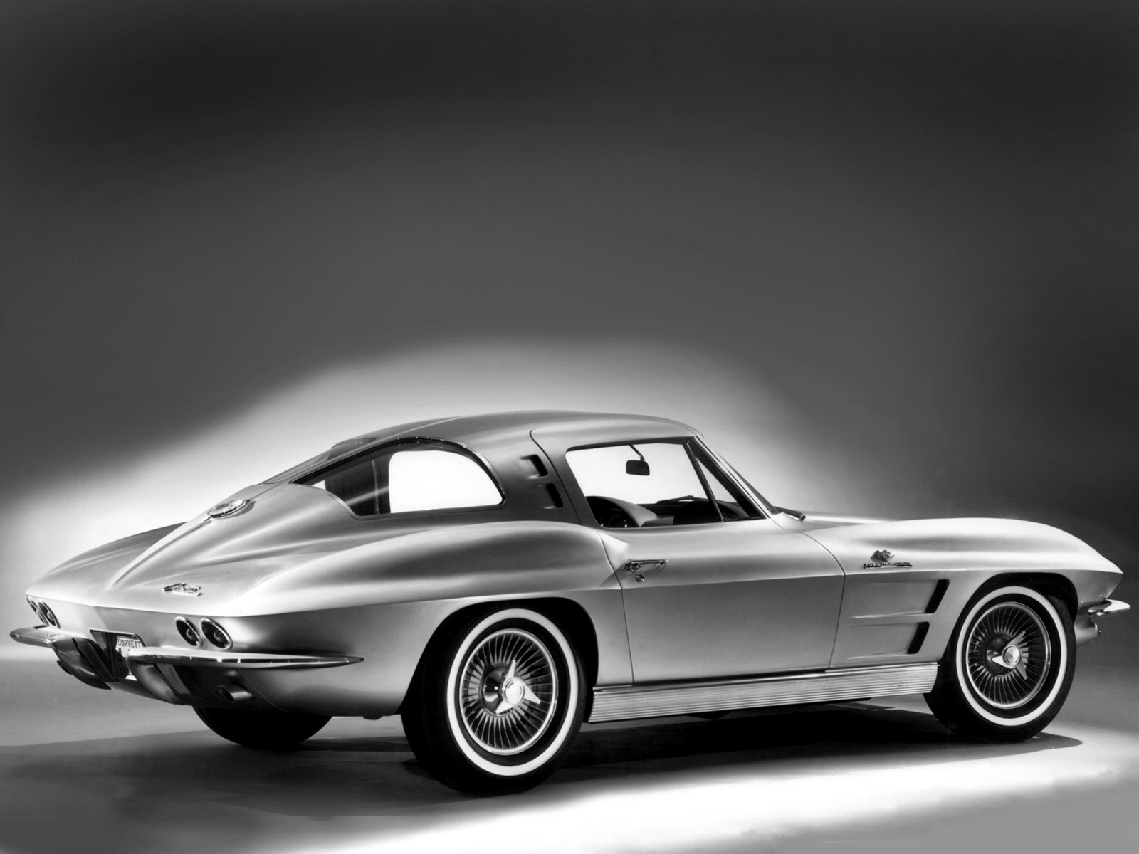 Le tout premier coupé Corvette de série arborait une carrosserie Fastback avec un long capot et un coupe-vent surélevée qui longeait le toit et continuait le long du coffre sur un pilier qui coupait la lunette arrière en 2 moitiés droite et gauche. Le rétroéclairage divisé est généralement attribué à Mitchell, qui prétendait avoir été inspiré par le coupé Bugatti 57SC « Atlantique ». La fonctionnalité est antérieure à la Corvette C2 et à la Q-Corvette de Bob McLean, ayant été utilisée par Harley Earl à la fois sur son concept-car Oldsmobile Golden Rocket et sur ses propres études de conception plus traditionnelles pour la Corvette C2, dont certains des modèles avaient progressé à grande échelle. L'inspiration d'Earl aurait été un coupé Alfa Romeo avec une carrosserie Scaglione présentée au Salon de l'auto de Turin en 1954. Un design similaire serait utilisé par la Buick Riviera de 3e génération qui sera vendue de 1971 à 1973.