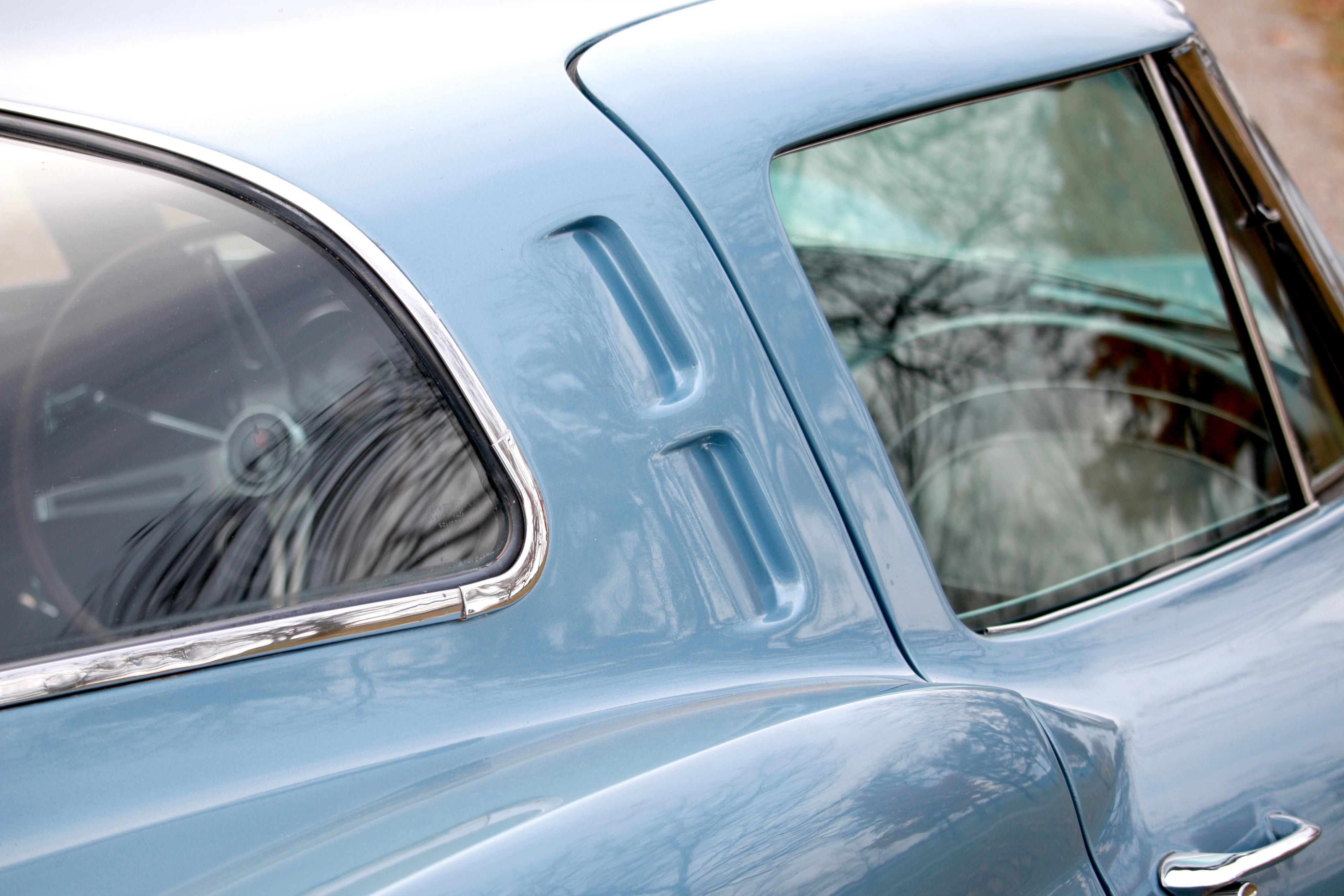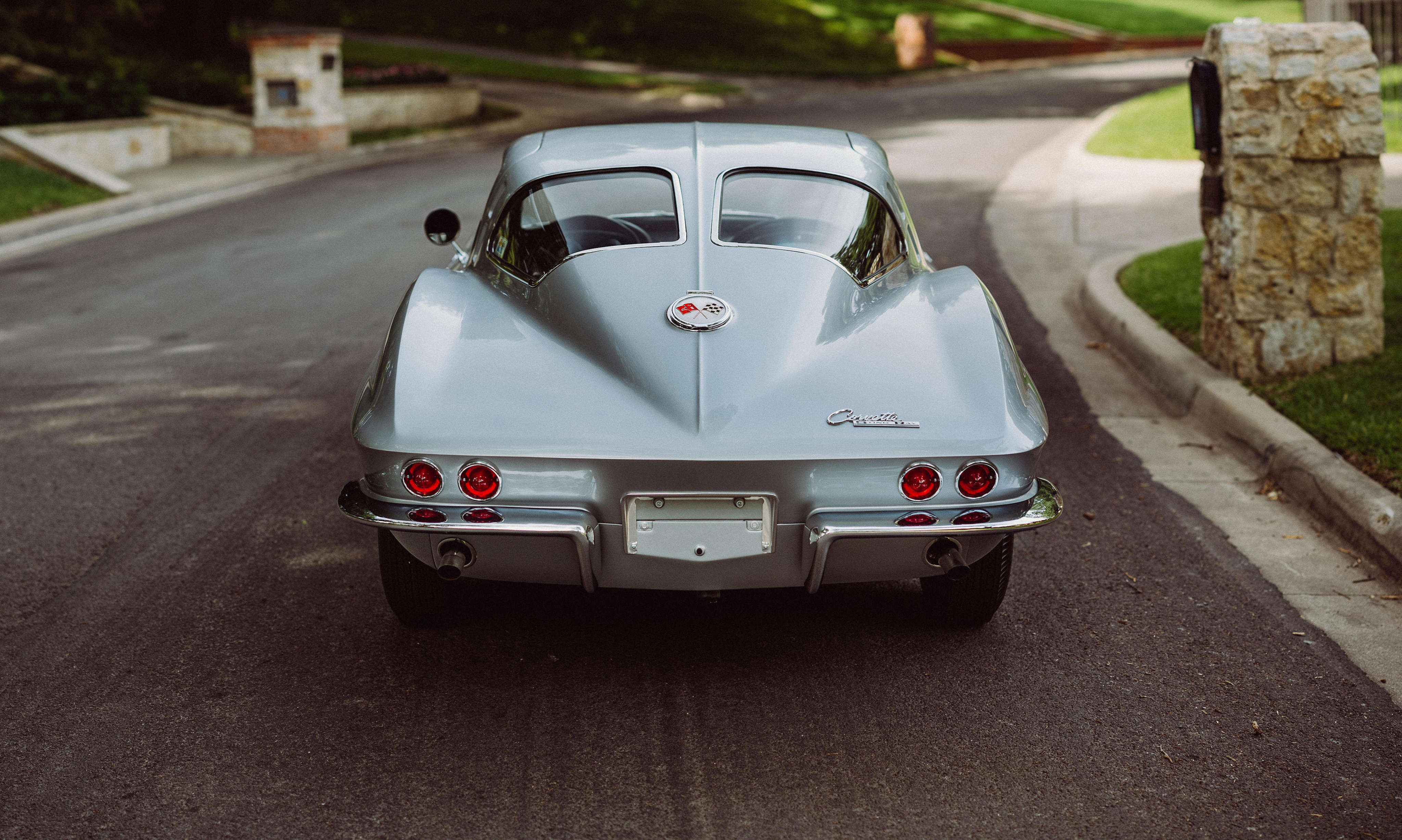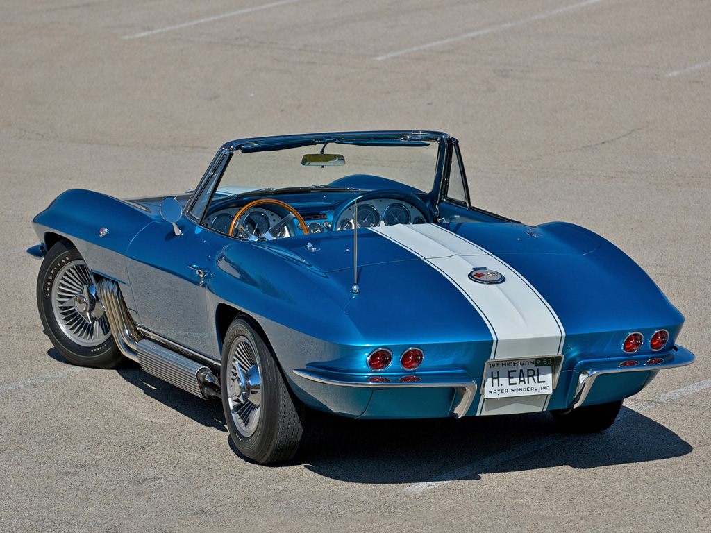 Le tout premier coupé Corvette de série arborait une carrosserie Fastback avec un long capot et un coupe-vent surélevée qui longeait le toit et continuait le long du coffre sur un pilier qui coupait la lunette arrière en 2 moitiés droite et gauche. Le rétroéclairage divisé est généralement attribué à Mitchell, qui prétendait avoir été inspiré par le coupé Bugatti 57SC « Atlantique ». La fonctionnalité est antérieure à la Corvette C2 et à la Q-Corvette de Bob McLean, ayant été utilisée par Harley Earl à la fois sur son concept-car Oldsmobile Golden Rocket et sur ses propres études de conception plus traditionnelles pour la Corvette C2, dont certains des modèles avaient progressé à grande échelle. L'inspiration d'Earl aurait été un coupé Alfa Romeo avec une carrosserie Scaglione présentée au Salon de l'auto de Turin en 1954. Un design similaire serait utilisé par la Buick Riviera de 3e génération qui sera vendue de 1971 à 1973.
