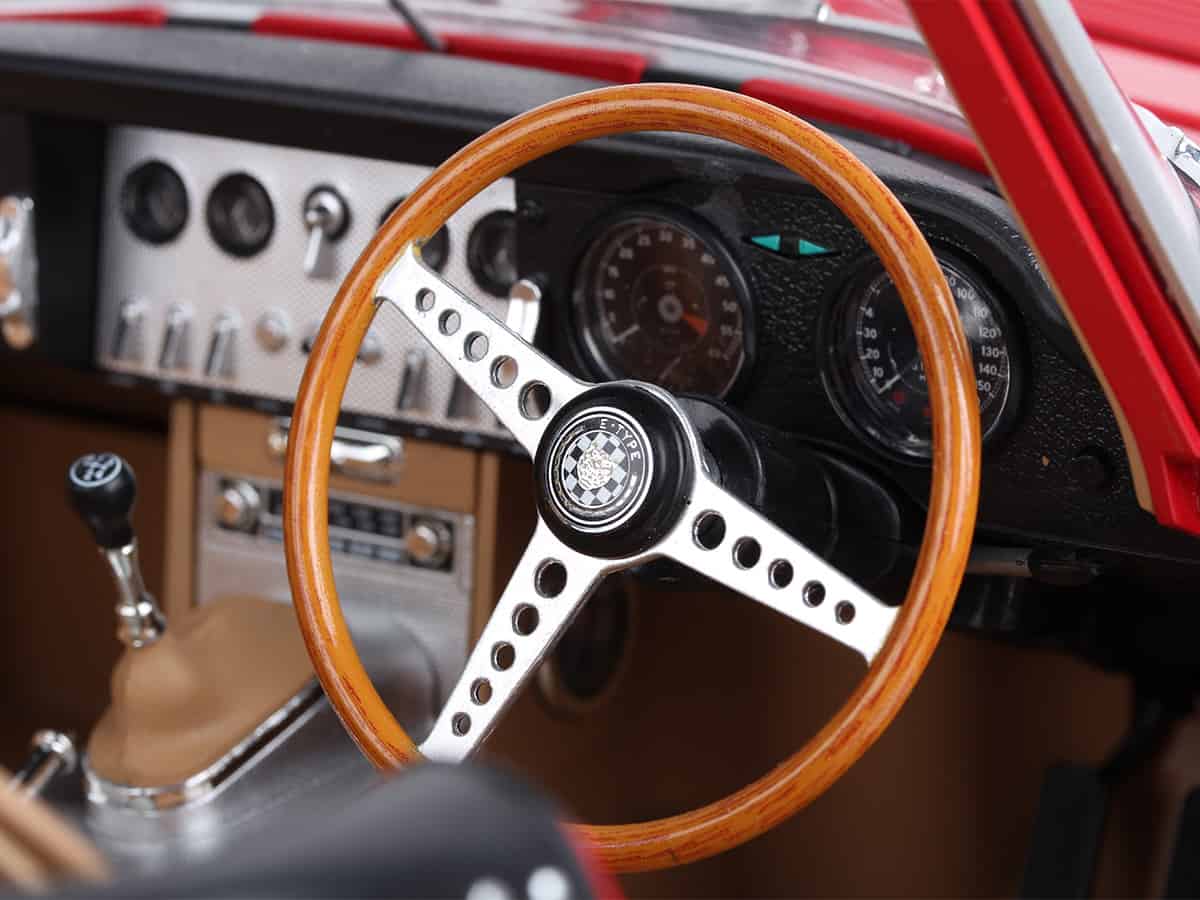 C’est à l’ingénieur en aéronautique Malcom Sayer que l’on doit son design, avec ses lignes élancées, sculptées qui font tourner autant de têtes aujourd’hui qu’elles ne le firent devant la presse mondiale en 1961. Notre maquette de la version roadster vous donne l’occasion d’admirer de près chaque centimètre de ses lignes parfaites, autant à l’intérieur qu’à l’extérieur. Entre nous, qui n’a pas envie de s’imaginer au volant de ce bolide, fendant l’air, cheveux au vent dans un paysage provençal, en se prenant pour Tony Curtis ou Brigitte Bardot ? Toutefois, l’attrait du Type E résidait autant dans sa conduite que dans son look, avec un moteur XK fantastique capable de produire 268,7 CV et de pousser le Type E jusqu’à 240 km/h.
