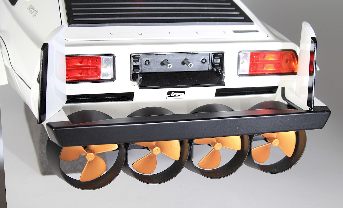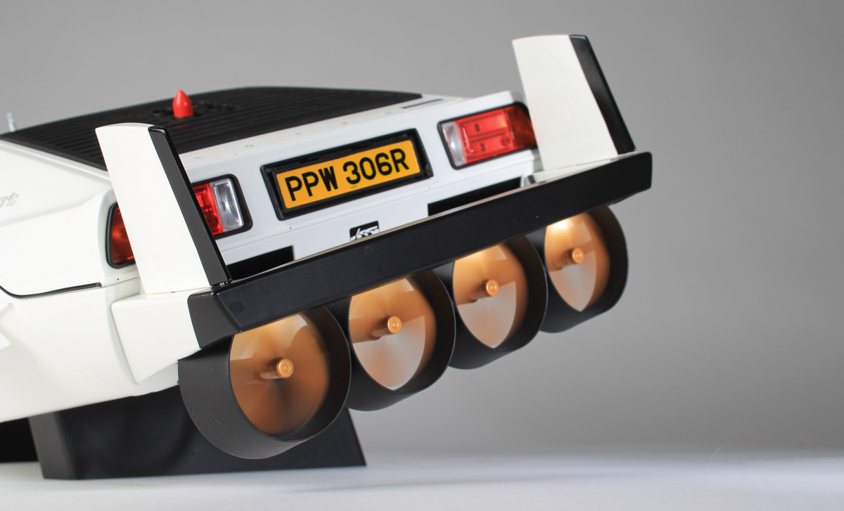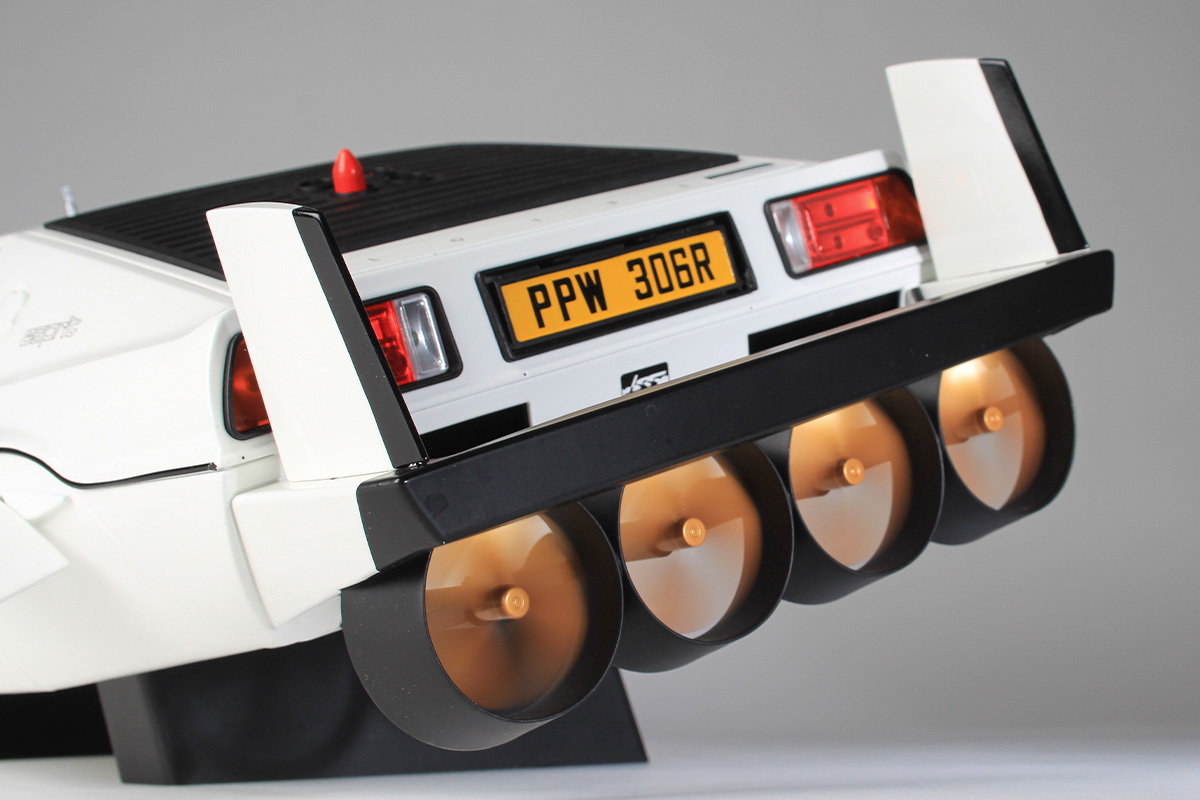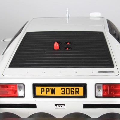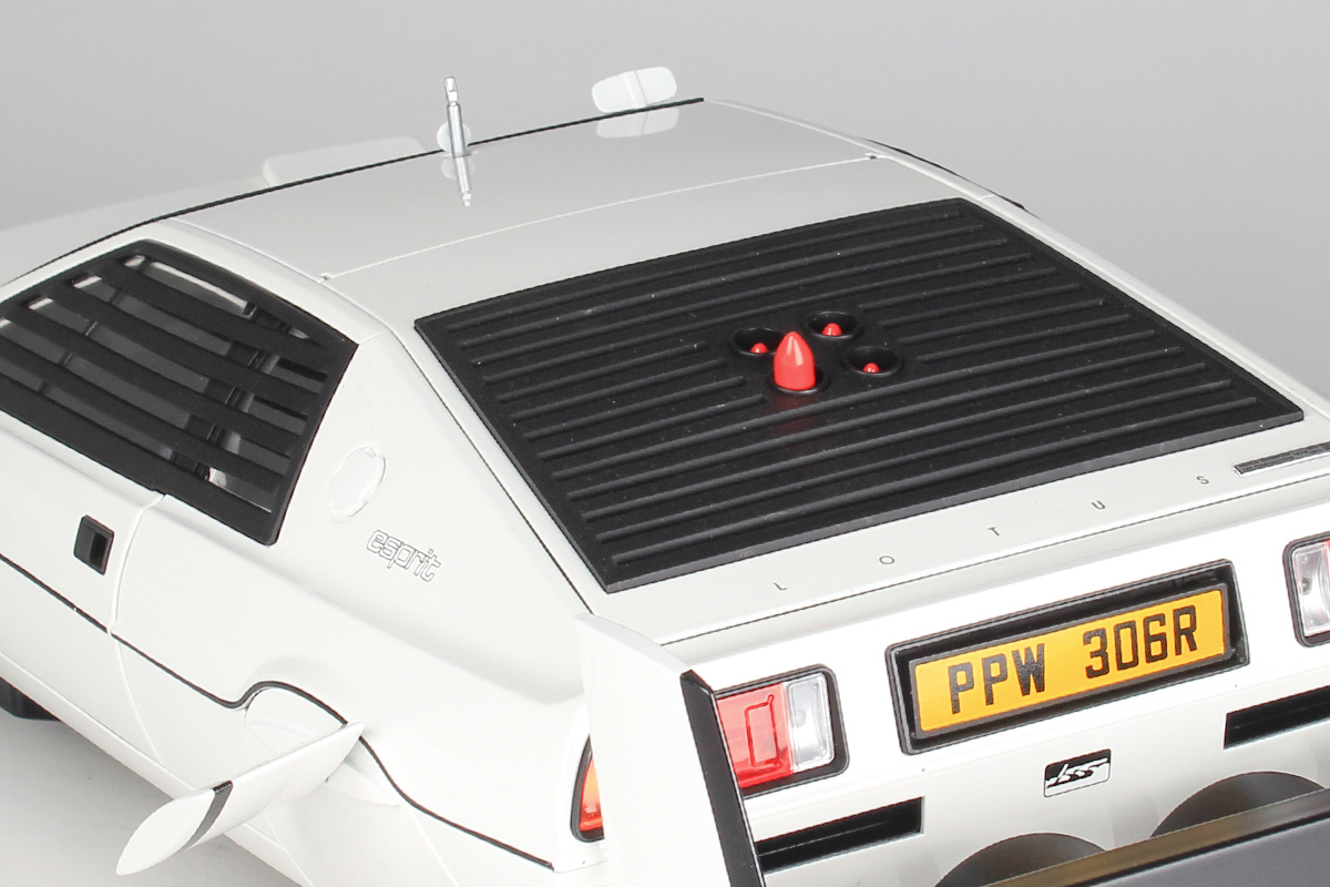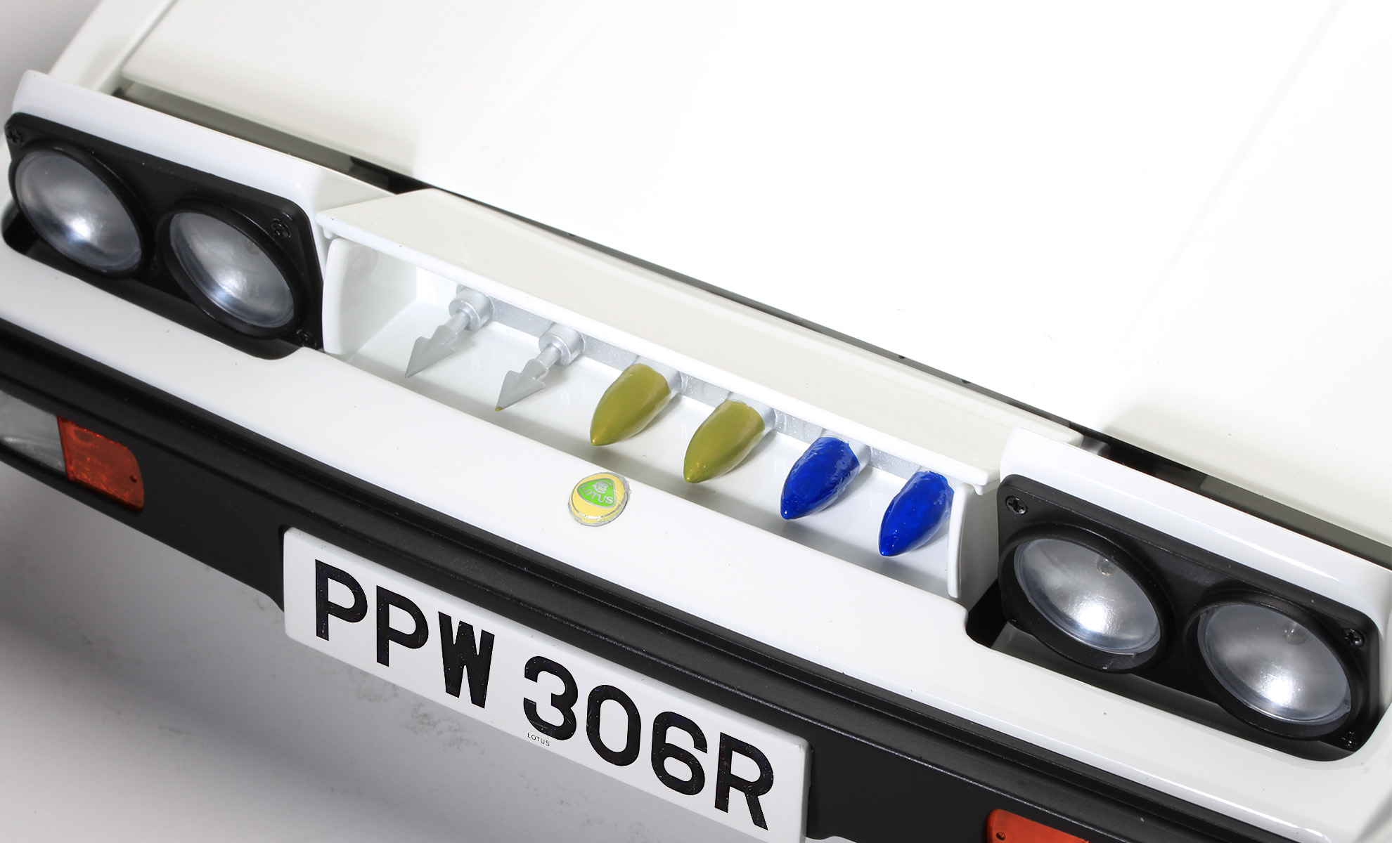 Notre Lotus Esprit à l'échelle 1/8 comprend tous les gadgets utilisés par James Bond pour déjouer les acolytes de Karl Stromberg dans L'Espion qui m'aimait (1977).