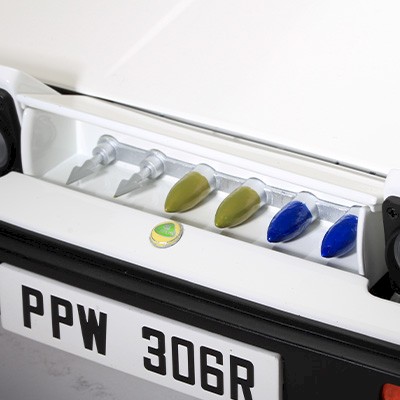 Présentée sous sa forme amphibie distinctive, la « Wet Nellie » est équipée d'une série de gadgets tels que les pulvérisateurs d'encre, les missiles mer-air, le lance-torpilles monté à l'avant et le distributeur de mine ventouse. Les 4 hélices situées sous le pare-chocs arrière sont actionnées par des moteurs pour assurer une vitesse élevée et impressionnante de rotation. Les 4 ailerons d’hydroglisseur et les 2 ailerons d'orientation à l'arrière tournent. Les détails de l'intérieur comprennent un écran radar central éclairé et un panneau de contrôle commandes nautique.
