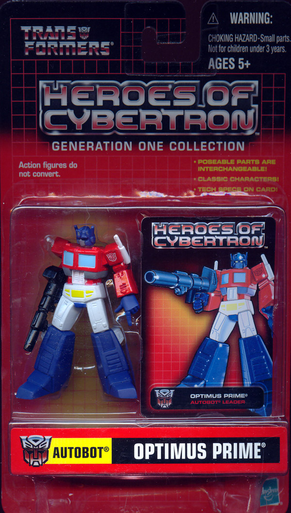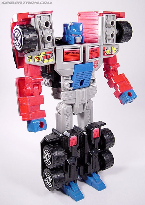 Au fil des ans, de nombreuses figurines ont été créées à l’image de l’incarnation originale d’Optimus Prime, dont certaines ont été présentées dans la fiction, d’autres non. De plus, certains fabricants de jouets ont fabriqué des jouets sans licence à son image ou des accessoires pour les jouets existants. Le jouet Optimus Prime original de 1984 faisait partie de la ligne de jouets Diaclone de 1983 de Takara nommée « Battle Convoy ». Il a été conçu par l’équipe de conception créative de Hiroyuki Obara, Shoji Kawamori, célèbre pour son travail dans Macross, et Kohjin Ohno. Les caractéristiques du jouet, telles que la conception de la tête et l’utilisation de l’avant de la cabine comme haut du torse, sont devenues des éléments de conception dans presque toutes les incarnations et variantes d’Optimus Prime. Ce jouet particulier a été réédité plusieurs fois, principalement pour commémorer l’anniversaire de la franchise Transformers. Optimus Prime a également été publié en tant que jouet Action Master et Powermaster dans la ligne de jouets originale Transformers.