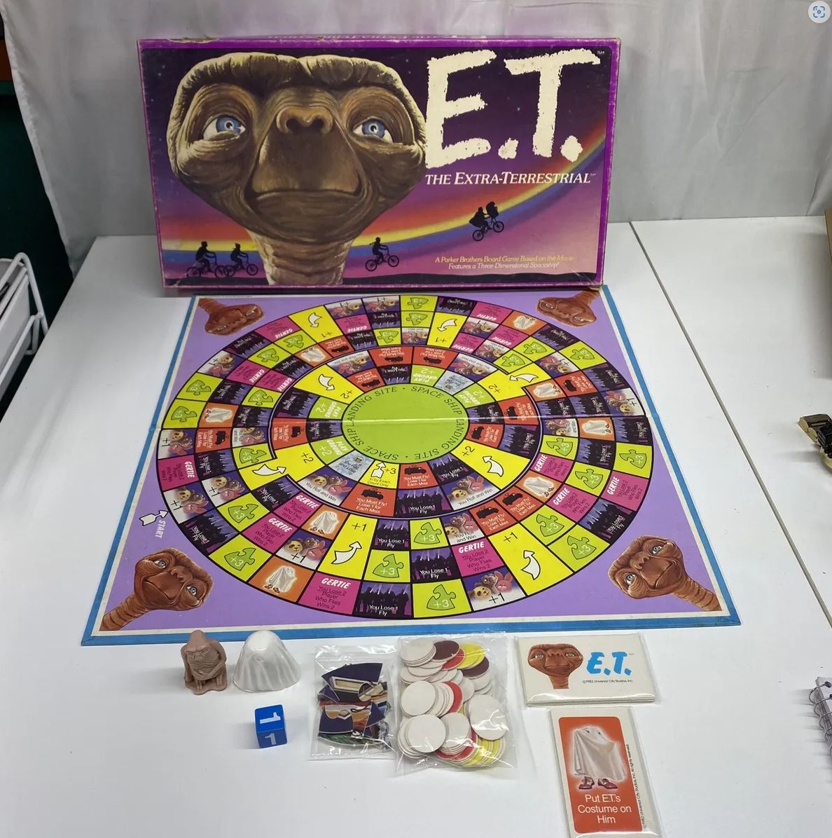 E. T. the Extra-Terrestrial (1982) (édité par Parker Brothers. De 2 à 4 joueurs pour une durée moyenne de 10 minutes). Le but est de réunir le nombre d'éléments nécessaire pour « appeler la maison » avant les autres.