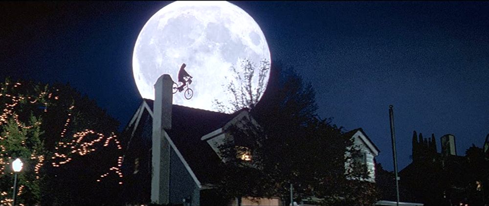 Dans le film Y a-t-il un flic pour sauver le président ? (1991), le faux Dr Meinheimer traverse une fenêtre en fauteuil roulant et passe devant la Lune durant sa chute, volant à la manière de la scène culte d’E.T.
