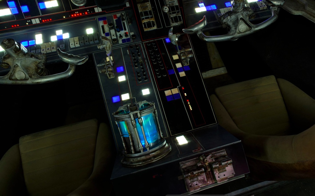 Quelques leviers supplémentaires sur une plaque circulaire noire ont été ajoutés du côté de Han de la console centrale. Sous certains angles, ils ressemblent à des microphones, mais ce n’est pas le cas.