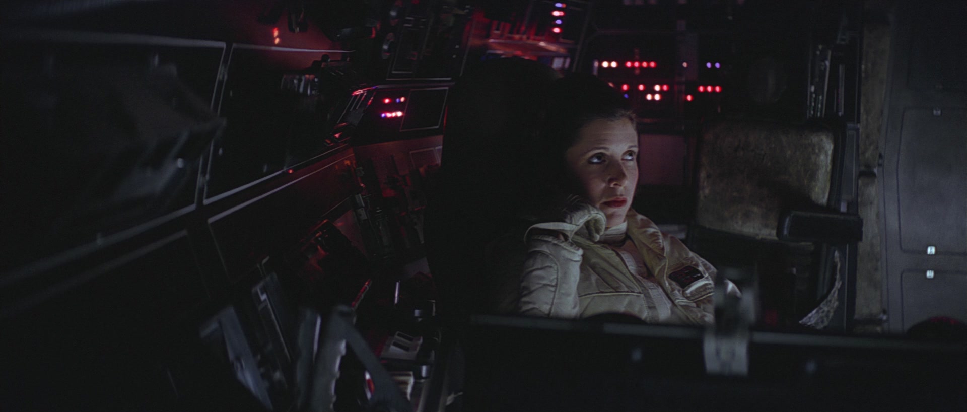 Le cockpit de l’ESB a des modèles de clignotement plus crédibles, car les lumières ont tendance à clignoter individuellement ou en petits groupes, plutôt que des rangées entières. Il n’y a pas non plus autant de motifs évidents visibles dans les brefs clips du cockpit. La scène où Leia est assise tranquillement dans le cockpit, luttant avec ses sentiments à l’intérieur d’un ventre de limace extraterrestre, a des clignotements assez décents.
