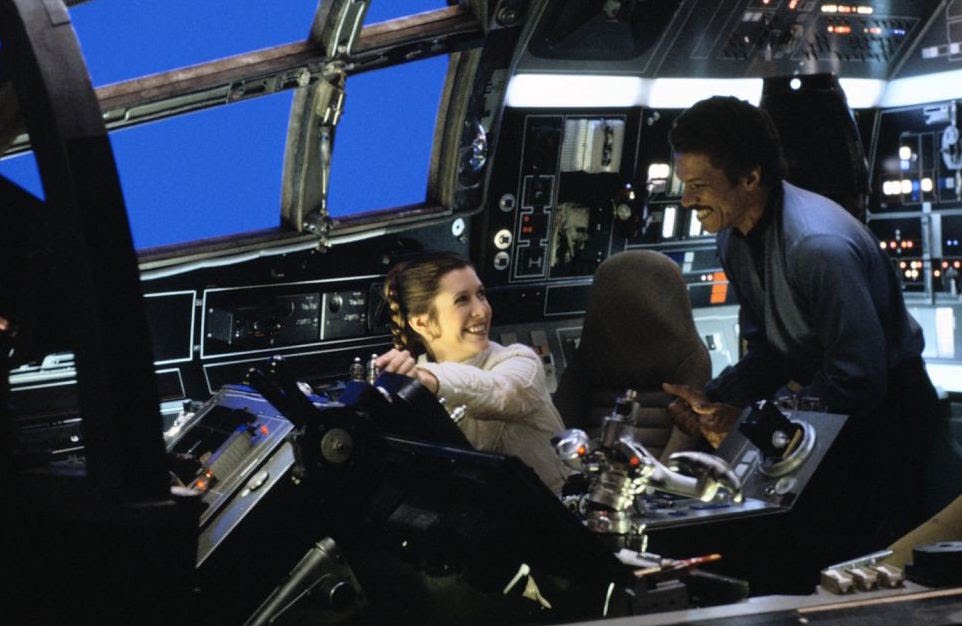 Le décor grandeur nature comportait rarement un vitrage dans la trilogie originale, car la caméra tirait généralement à travers les fenêtres ou vers l’avant vers un écran bleu. Le vitrage provoquerait des reflets. La scène de Mynock suceur de fenêtre de limace spatiale est bien sûr une exception. Les nouveaux films comportent souvent des panneaux acryliques transparents vissés aux cadres de fenêtre pour les scènes où la caméra est à l’extérieur.