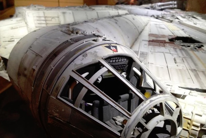 Le cockpit est l’un des aspects les plus intéressants de la conception du Faucon Millenium. Contrairement à la plupart des vaisseaux spatiaux de cinéma traditionnels jusqu’à ce point, la conception de Joe Johnston pour le Faucon est fièrement asymétrique, avec un cockpit en porte-à-faux du côté tribord et une antenne de capteurs (ou quoi que ce soit) du côté bâbord.