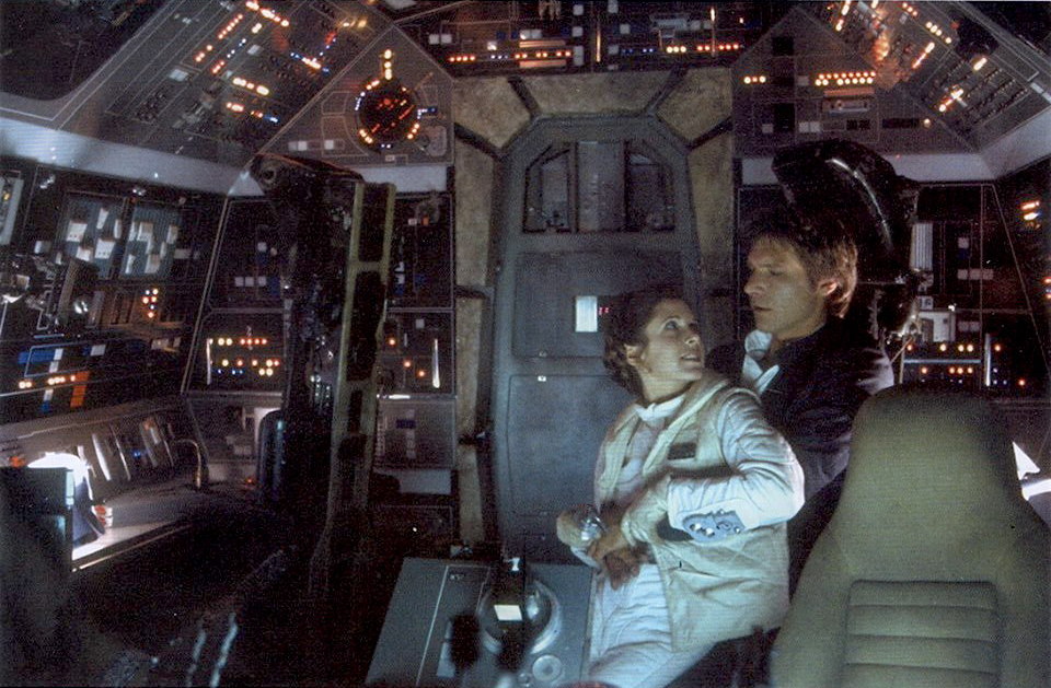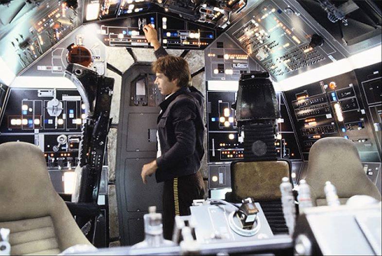 Harry Lange était un ancien designer de la NASA qui avait travaillé sur 2001: L'Odyssée de l'Espace, et il a également apporté son sens de la précision et de la logique visuelle au plateau du Faucon. Son objectif avec la conception du cockpit du Faucon Millenium n’était pas d’atteindre le genre de rigueur scientifique exigée par Stanley Kubrick, mais Lange s’efforçait néanmoins clairement de rendre le cockpit réaliste et crédible en soi.