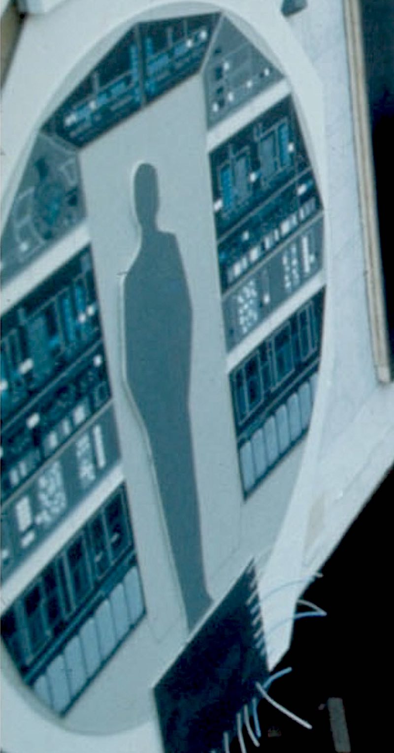 Les images documentaires sont de qualité relativement médiocre car il s’agissait de séquences 16mm portables converties en NTSC TV, mais elles montrent tout le panneau avant. Il y a une photo en haut de cette page dans la section Les décors grandeur nature, ainsi que celle ci-dessous.