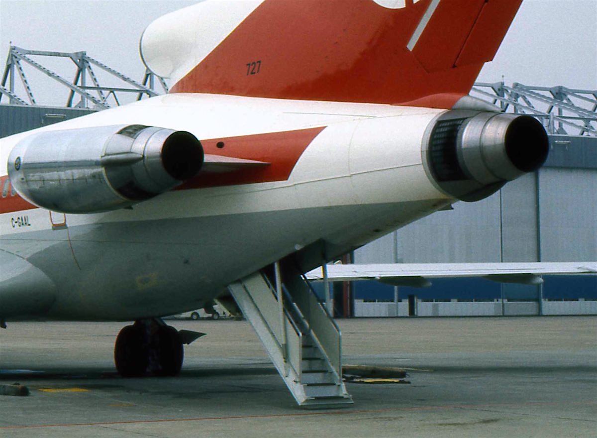 Cette partie est une supposition totale, mais peut-être que l’idée de la rampe a été inspirée par les escaliers aériens de l’aviation, comme l’escalier arrière du Boeing 727 qui s’articulait à l’arrière (une sortie arrière célèbre utilisée par le mystérieux pirate de l’air de parachutisme connu sous le nom de «« DB Cooper » en 1971). Ces escaliers, qui étaient couramment utilisés dans les années 1960 et 70, ont une paire de jambes de force qui, lorsqu’elles sont abaissées, ressemblent un peu à l’hydraulique du Faucon. Cependant, ce ne sont pas des pistons - les jambes de force s’articulent à mi-chemin et se replient. Mais c’est quelque chose que les passagers occasionnels n’auraient peut-être pas vu, s’ils n’avaient jamais vu les escaliers être soulevés ou abaissés.