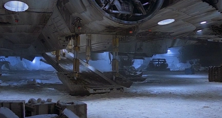 Contrairement au premier film, dans L'Empire contre-attaque, la rampe grandeur nature est clairement visible en mouvement. Elle commence lentement à s'élever alors que nos héros fuient le hangar de glace de Hoth, on la voit descendre à l'intérieur de la limace spatiale, et on la voit descendre en gros plan pour l'arrivée sur Bespin.