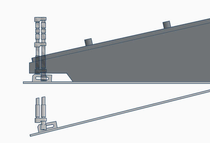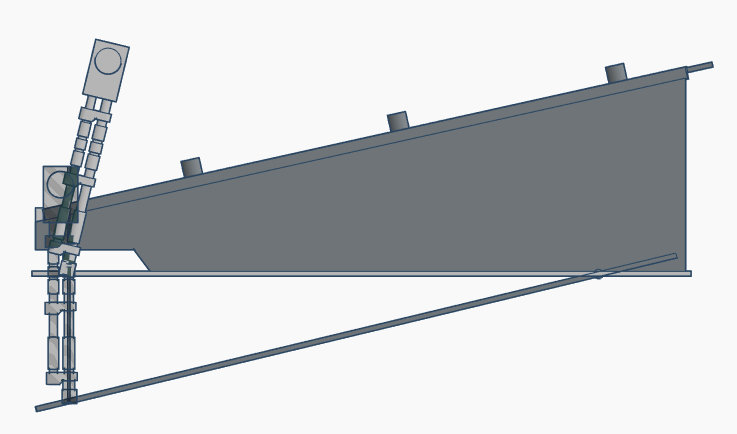 Le problème est que, en raison de la façon dont la rampe pivote vers le bas, vous ne pouvez pas avoir de pistons hydrauliques avec une course uniquement verticale. La géométrie simple signifie que les pistons devraient se déplacer horizontalement pour s’adapter au mouvement de la rampe. Ou la rampe devrait s’allonger.
