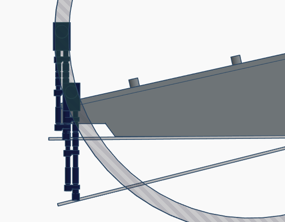 Le point d'articulation n'est pas au sommet de la rampe, où le plancher de la rampe rencontre putativement le couloir de l'anneau. Au lieu de cela, c'est juste avant cela, ce qui signifie qu'il y a une longueur de tronçon de rampe fixe. Cela se voit clairement sur les plans et aussi sur la scène ci-dessous.