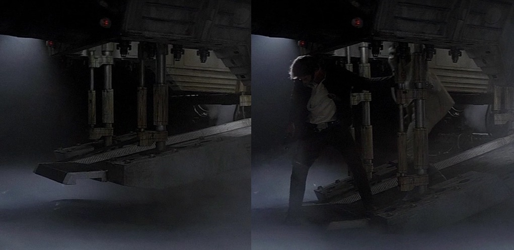 Maintenant, il est possible qu'il s'agisse de supports temporaires pour la construction. Ils semblent être espacés légèrement plus large que ce à quoi je m'attendais. Et le fait que c'est ce qu'ils ont fait pour Solo ne signifie pas qu'ils ont fait la même chose dans ESB. Mais cela donne du crédit à la théorie selon laquelle c'est ainsi que la rampe aurait pu être déplacée.