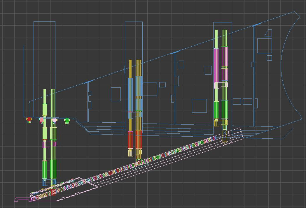 Fondamentalement, la rampe d’embarquement pour ANH a été conçue pour avoir l’air vraiment cool, mais n’a jamais été entièrement conçue. C’est un mélange d’une rampe basculante combinée à 3 paires de poteaux verticaux qui sont censés être des mécanismes hydrauliques.