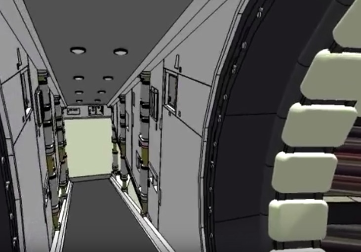 Le décor intérieur de ANH correspond cependant à une section incurvée du couloir. La salle à ce stade devrait donc être un toroïde (un beignet) et non un cylindre.