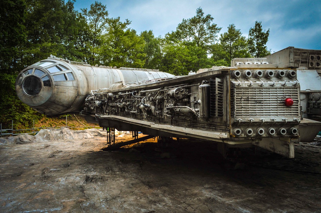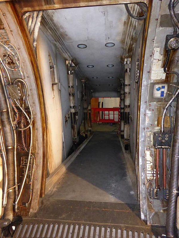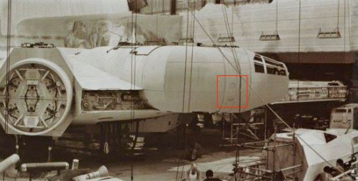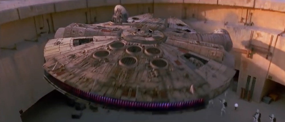 Frustrant pour les maquettistes geeks, les décors physiques du Faucon n’ont jamais été montrés dans aucun film sous un angle qui révélait correctement l’arrière-train. Et étrangement, il y a une conspiration totale du silence quand il s’agit de photos sur le plateau de tournage de l’arrière-plan. Malgré ma quantité embarrassante de recherches, je n’ai pas été en mesure de trouver une seule photo qui montre à quoi ressemblait toute la zone du moteur sur le plateau dans un film Star Wars de la trilogie originale !