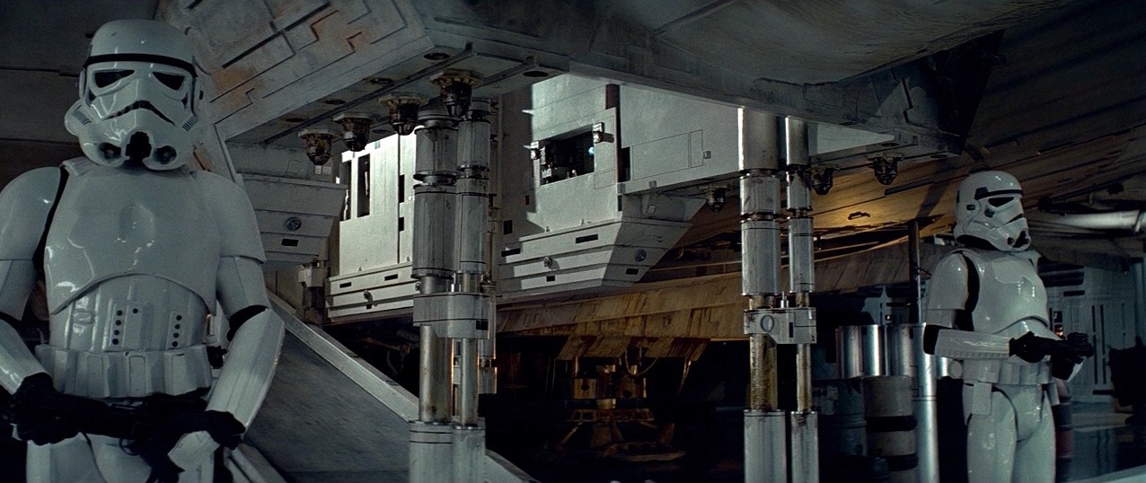 Ce plateau de tournage était similaire au plateau ESB, seuls les plans des coulisses montrent clairement 8 plafonniers au lieu de 6. De plus, les 2 murs de part et d'autre de la rampe sont en miroir, alors qu'ils étaient différents dans ANH.