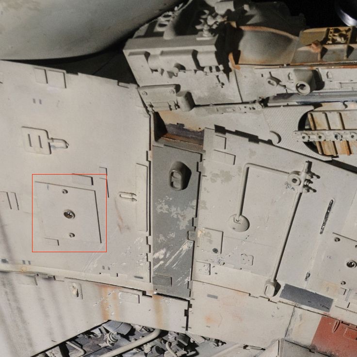 Dans les scènes du hangar de Hoth dans ESB, l'une des fosses inférieures circulaires du côté bâbord (celle la plus proche de la pointe) semble avoir une petite lumière rouge profondément à l'intérieur. D'autres scènes semblent montrer des lumières rouges enfouies profondément dans le greeblage des flancs ici et là, comme celle-ci.