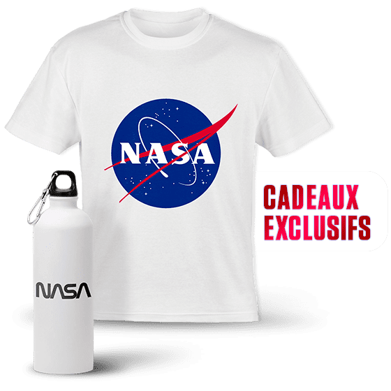 Et si vous vous abonnez dès aujourd’hui, vous recevrez deux cadeaux en plus : la bouteille exclusive NASA et un T-shirt de haute qualité avec le logo mythique de la NASA.