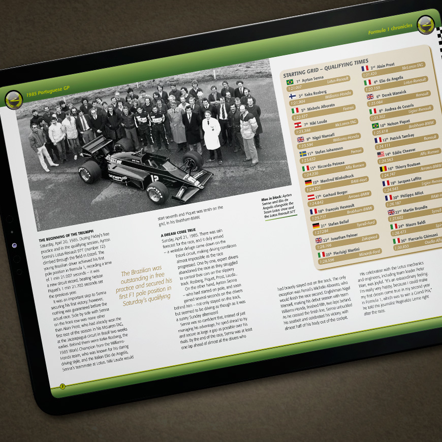 Photo 22 : le tableau de bord de la Lotus 97T 1985. C'est le châssis (n°2) avec lequel le grand Ayrton Senna a remporté son tout premier Grand Prix, le Grand Prix du Portugal 1985 (1024×593px)