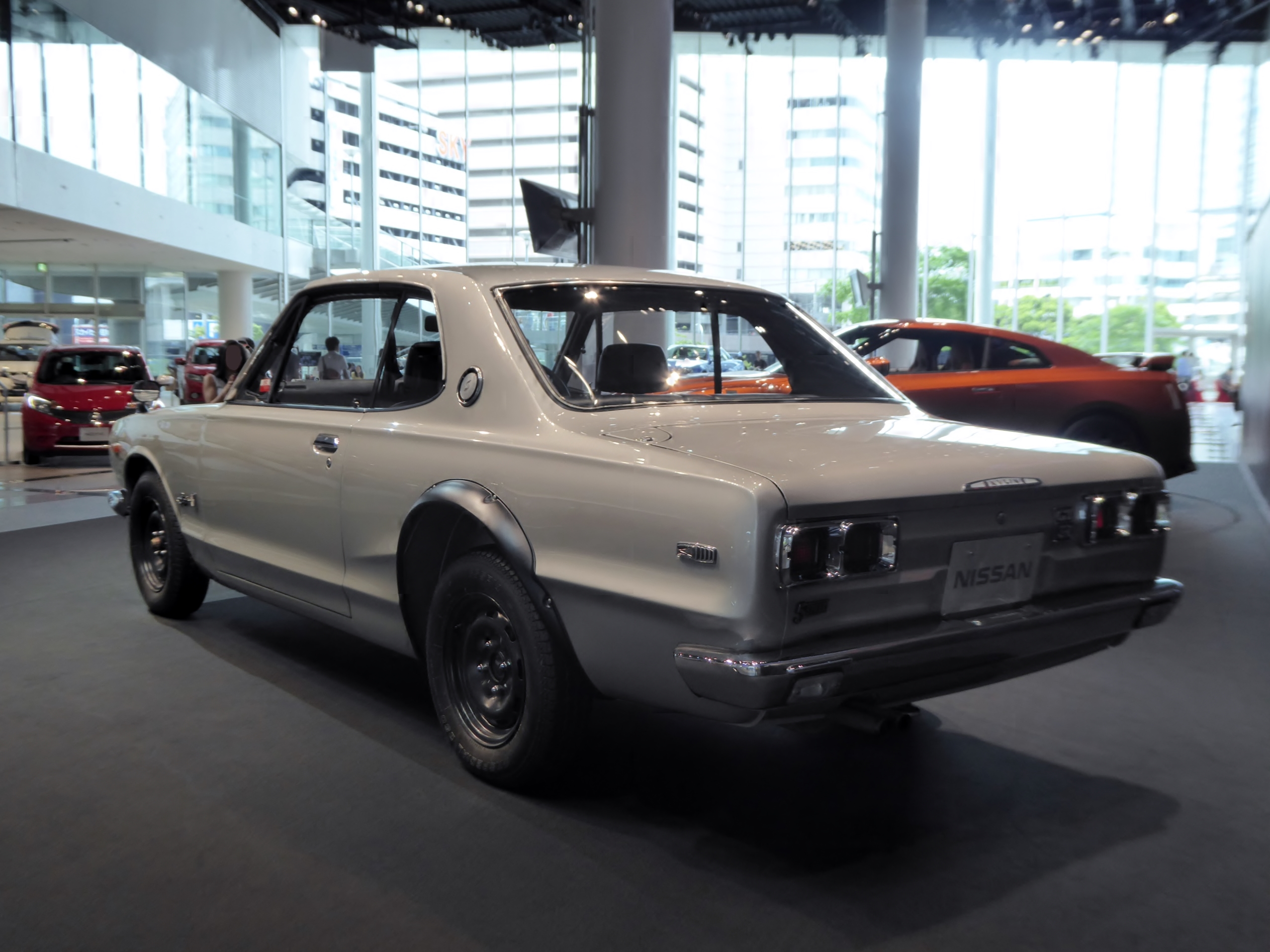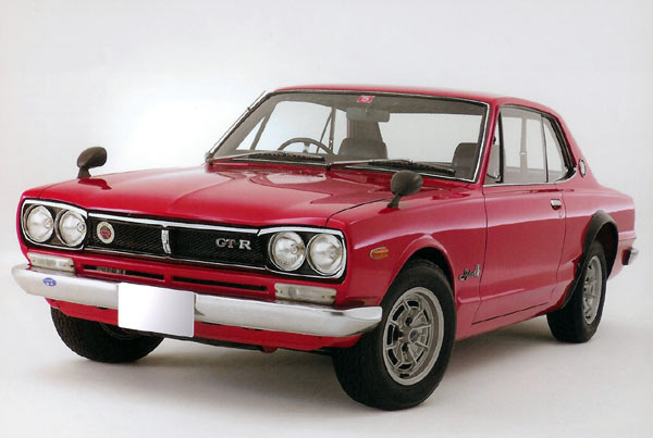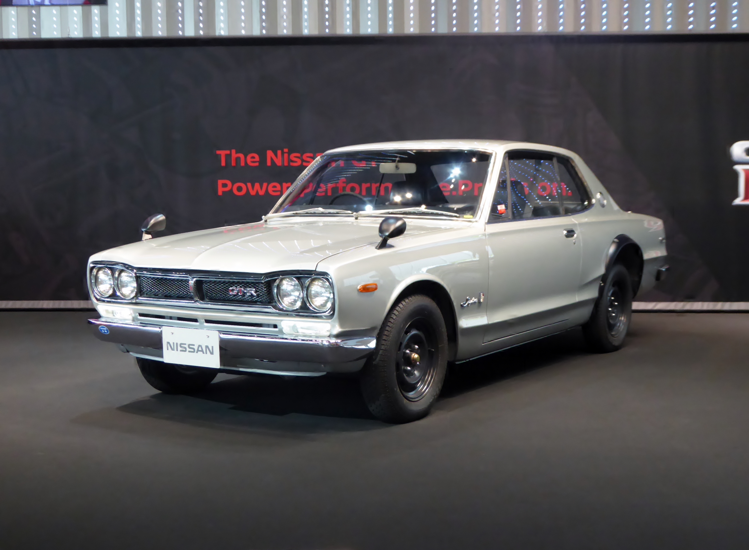 La première Skyline GT-R, connue sous la désignation interne de Nissan PGC10, a été introduite le 4 février 1969 et était exclusive au réseau de concessionnaires Nissan japonais appelé Nissan Prince Store lorsque la société Prince a été intégrée aux opérations de Nissan en 1966. Elle était disponible à l’origine en tant que berline à 4 portes après ses débuts publics au Salon de l’automobile de Tokyo en octobre 1968. Elle a été annoncée aux côtés de la voiture de course Nissan R380 pour mettre en valeur l’héraldique de course de la Skyline. Elle était équipée du moteur 6 cylindres en ligne S20 de 2,0 litres à DACT développant 119kW (162 PS ; 160ch) à 7'000 tr/mn et 176Nm (130 lb⋅ft) à 5'600 tr/mn. La puissance était fournie aux roues arrière par une transmission manuelle à 5 vitesses et la voiture était équipée d’un différentiel à glissement limité. La première Skyline GT-R reposait sur une suspension à jambes de force à bras semi-tirés. Le système de freinage se composait de freins à disque à l’avant et de freins à tambour à l’arrière. Elle était disponible en version coupé en mars 1971 avec le code de châssis KPGC10.
