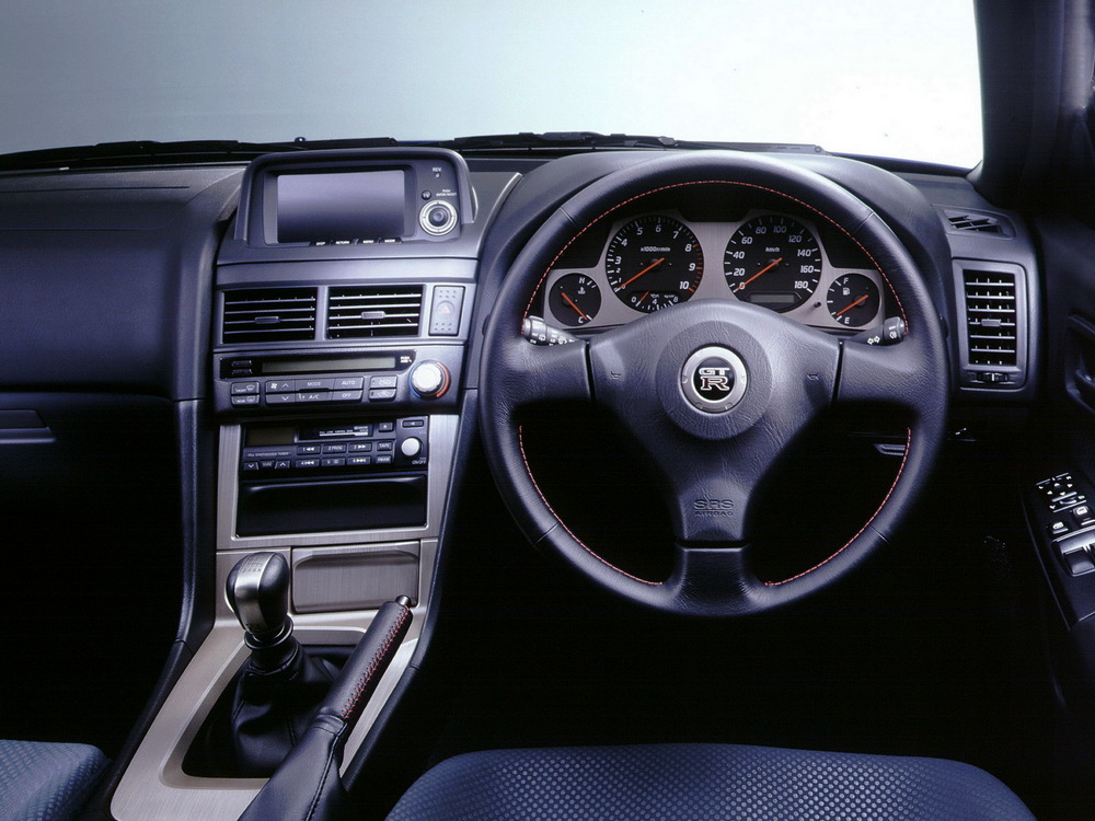 Une nouvelle caractéristique de la R34 GT-R est un écran multifonction LCD de 5,8 pouces au centre du tableau de bord, qui affiche 7 lectures différentes en direct des statistiques du moteur et du véhicule telles que la pression du turbocompresseur (1,2 bar max), la température de l’huile et de l’eau, entre autres. Le modèle GT-R V·Spec a ajouté 2 fonctions supplémentaires à l’affichage : les températures d’admission et d’échappement. Les écrans multifonctions (MFD) Nismo pouvaient être achetés moyennant un coût supplémentaire, ils comprenaient un chronomètre, un compteur de force G et une augmentation de la mesure de la pression de suralimentation à 2 bars. La R34 GT-R a été raccourcie en réponse aux préoccupations des clients qui pensaient que la R33 était trop encombrante.