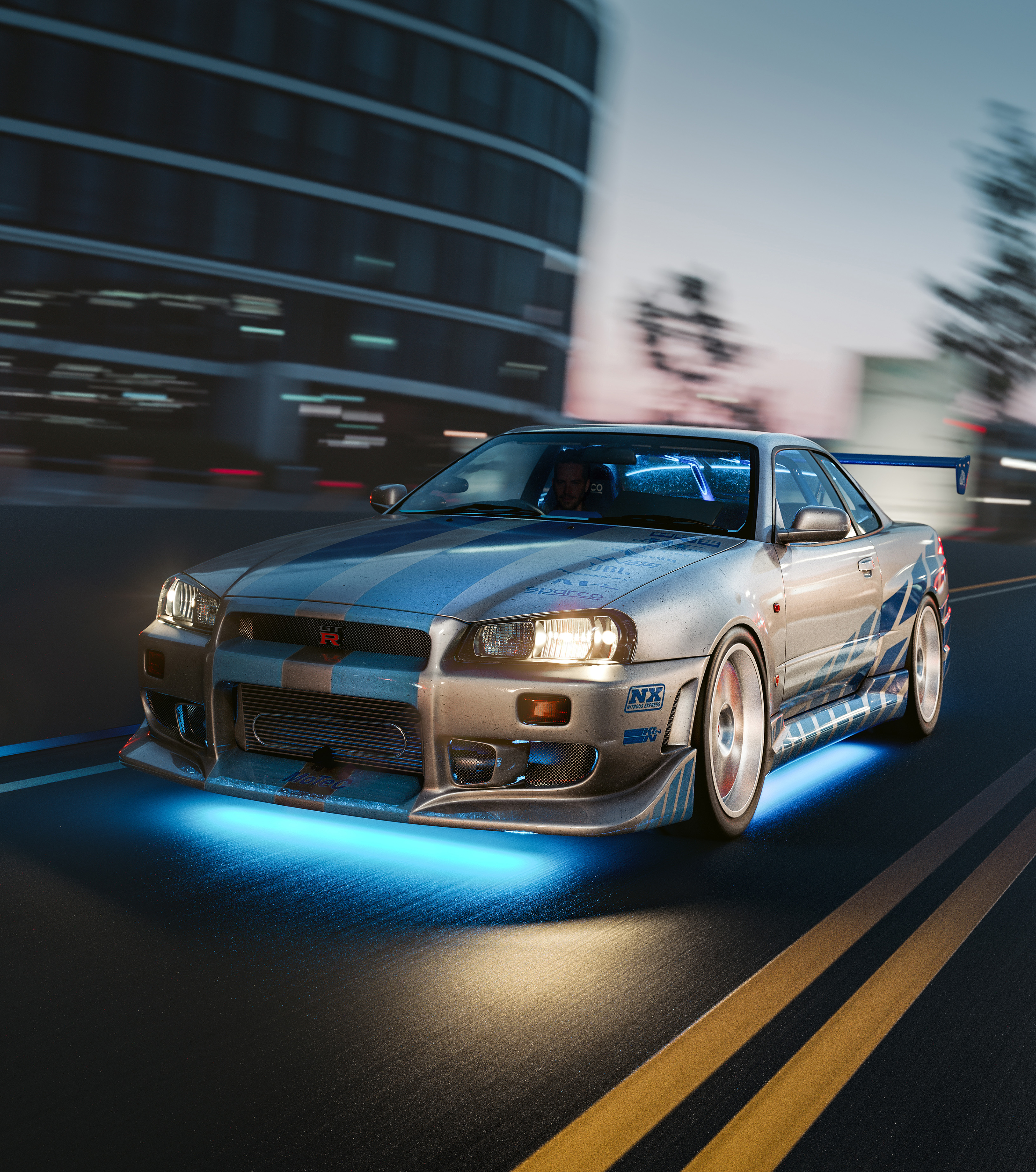 Brian est vu au volant d'une Skyline bleue dans la course avec Dominic Toretto. Cette voiture est également utilisée pour traverser la frontière pour entrer au Mexique. Il utilise un turbocompresseur d'une Nissan GT-R.
