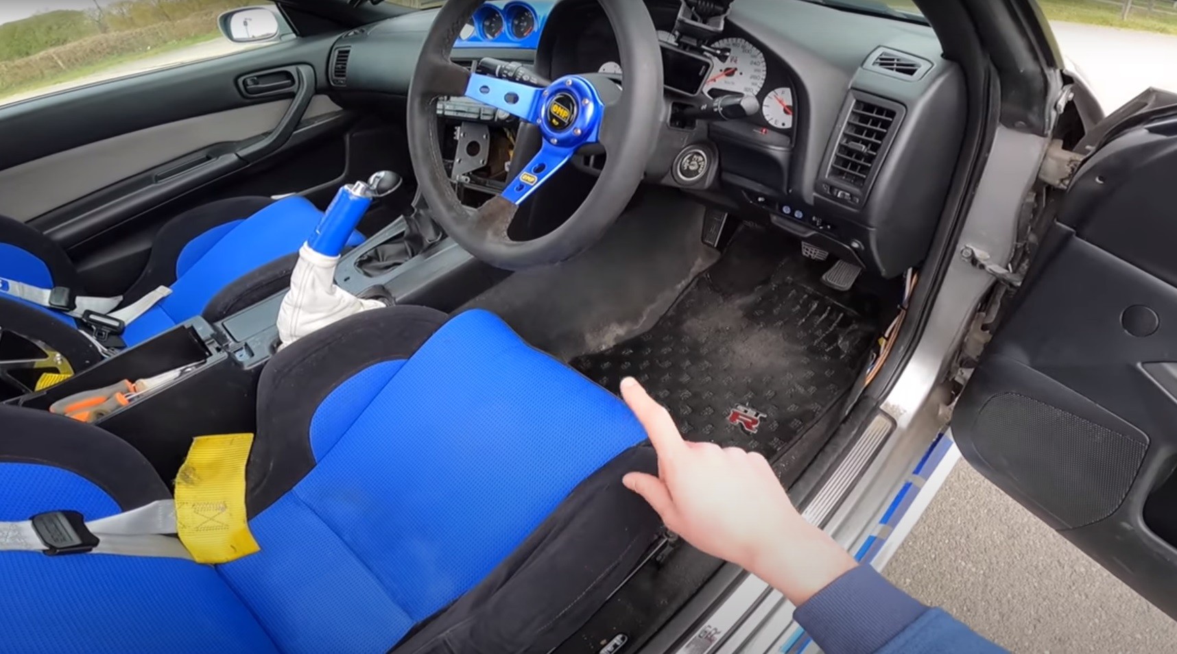 L’intérieur de la voiture était très basique et comportait des sièges baquets de course et un volant à 3 branches ainsi que des inserts en bois. Les pédales ont été finies en aluminium.