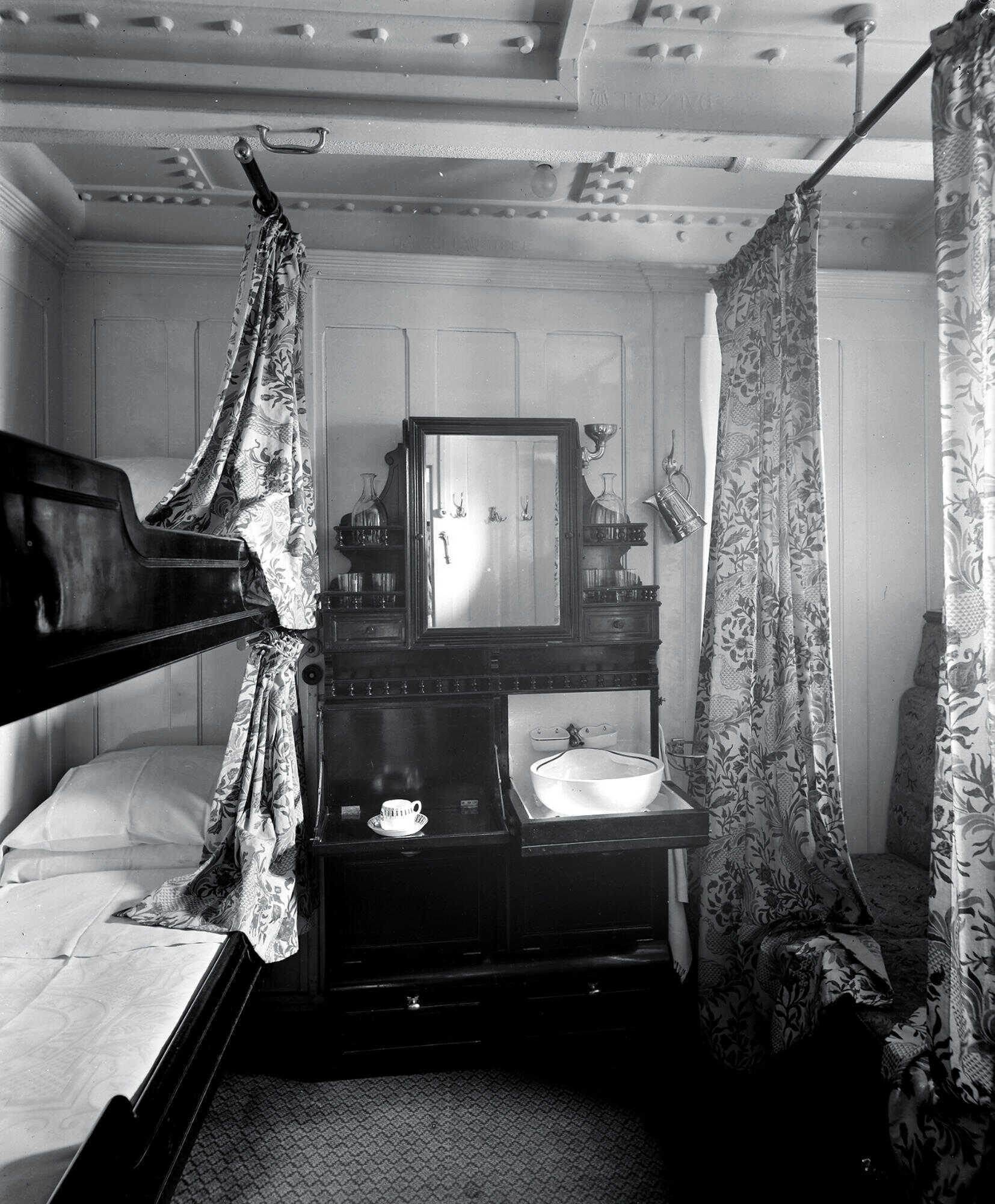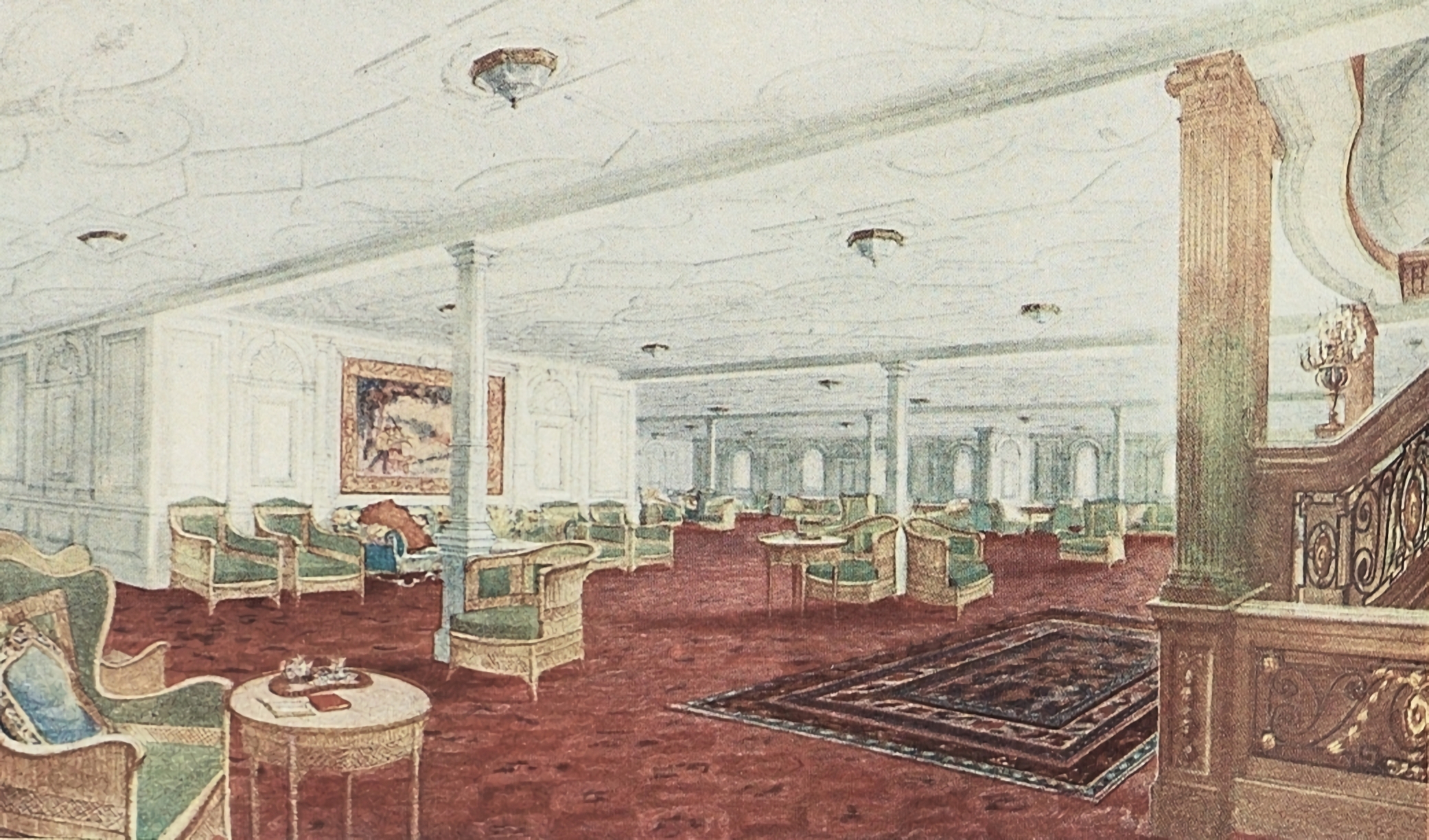 Les passagers de deuxième classe ne sont pas en reste et bénéficient de cabines souvent équivalentes à la première classe d'autres navires, à l'arrière des ponts D à G. Un escalier et un ascenseur desservent la totalité de la hauteur du navire, leur donnant accès au pont des embarcations, à leur fumoir (pont B), leur bibliothèque (pont C), et leur salle à manger (pont D). Ils disposent également d'une promenade couverte.