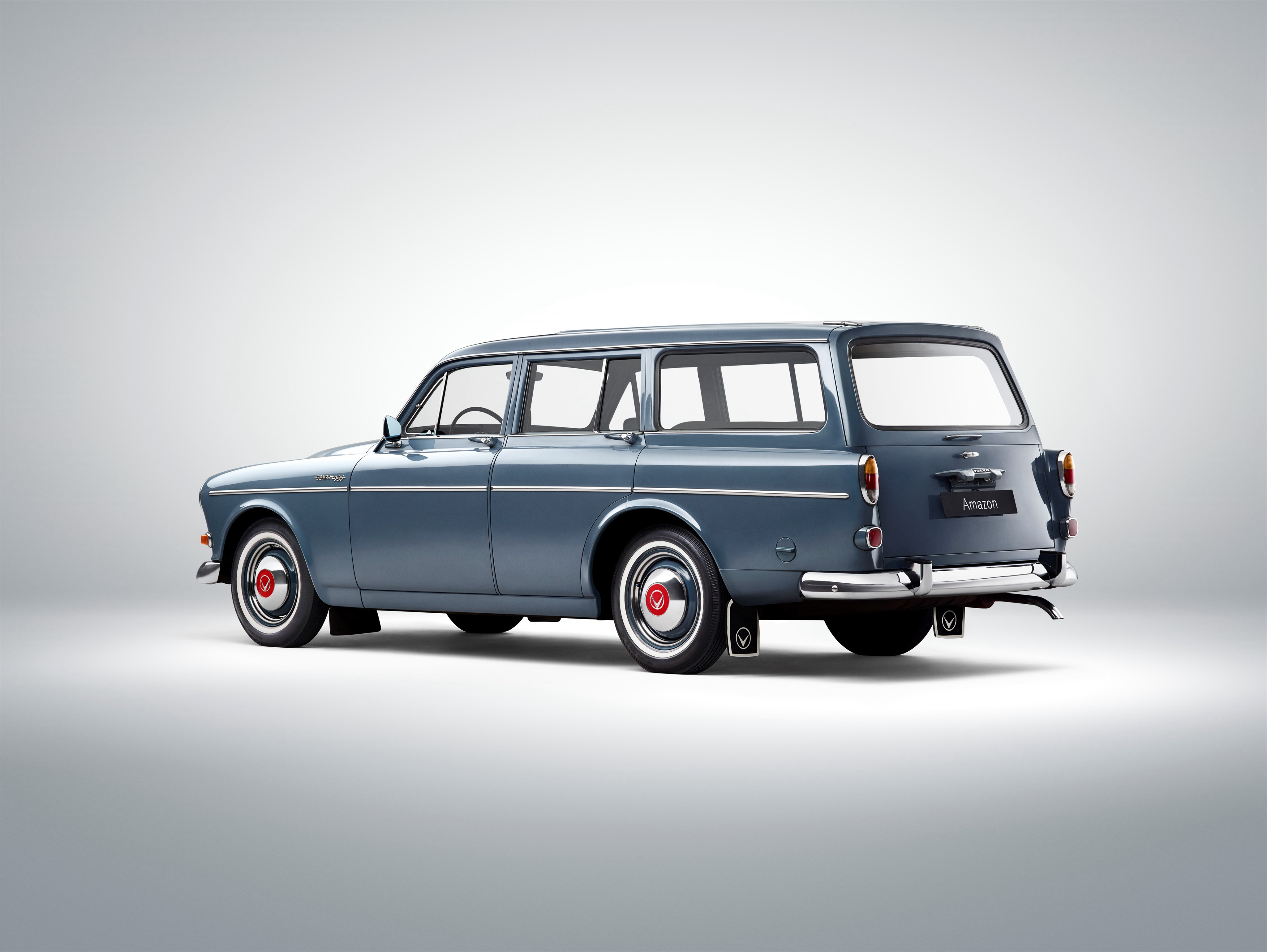 L’Amazon est présentée au public le 1e août 1956, une voiture 4 portes. Les livraisons n’ont commencé qu’en mars de l’année suivante. 2 prototypes ont été enregistrés comme l’année modèle 1956, bicolores peints avec le toit dans une couleur différente du reste de la voiture. Le break avait le nouveau moteur B16, mais la boîte de vitesses était l’ancienne 3 vitesses du PV ; système électrique de 6 volts ; tableau de bord matelassé ; les ceintures de sécurité avant étaient de série ; éclairage de plaque d’immatriculation en 2 pièces à l’arrière ; vernis bicolore.