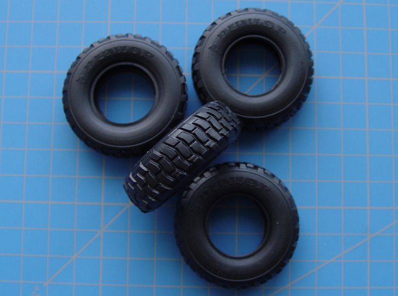 6 pneus en vinyle souple, la bande de roulement est bonne, même la taille du pneu est facile à lire. Cependant, il existe également de bonnes roues en résine.