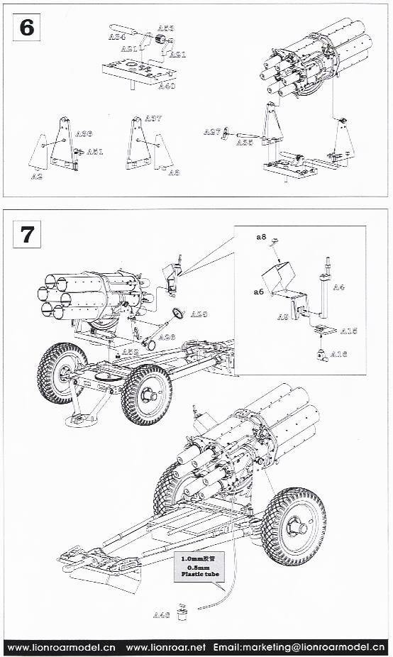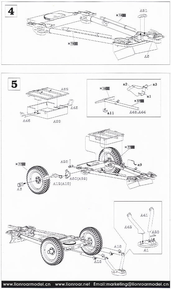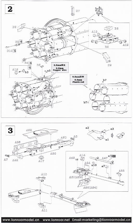 Ceux-ci sont dans les dessins de vue explosés conventionnels et sont aussi clairs que vous trouverez dans la plupart des kits principaux, mais bien-sûr une étude minutieuse avant de commencer sera un avantage en particulier avec l’assemblage du canon. Le seul domaine où des informations supplémentaires seraient utiles est le placement du câblage, mais à part cela, il ne devrait pas y avoir de problèmes réels.