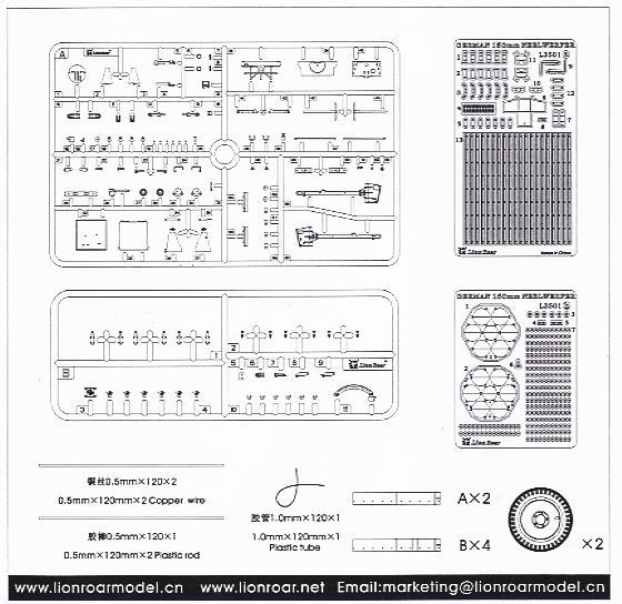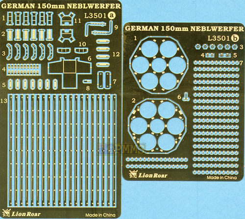 Lion Roar a commencé à produire des kits multimédias complets avec 2 kits de 150mm Nebewerfer 41 (kit #L3501) et 210mm Nebelwerfer 42 (kit #L3503) et en même temps sorti des ensembles complémentaires avec 6 Rockets Nebelwerfer 150mm en métal (kit #L3502) et 5 fusées Nebelwerfer en métal de 210mm (kit #L3504) qui vous permettent d'acheter le kit Nebelwerfer et autant d'ensembles de fusées séparés que vous en avez besoin.