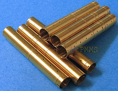 Les 6 tubes cylindriques en laiton ne sont pas seulement des morceaux de tube en laiton, mais ont formé des arêtes autour d'eux pour localiser les plaques de montage et des rangées de trous fins indiquant la position des rails internes qui sont fournis sous forme de pièces fines gravées séparées. Ces rails doivent être pliés à angle droit et pour faciliter cela, il y a en fait de fines fentes au milieu du rail avec seulement 3 petites jointures à plier, ce qui facilite le travail, mais l'utilisation d'un outil de pliage gravé de bonne qualité sera toujours conseillée.
