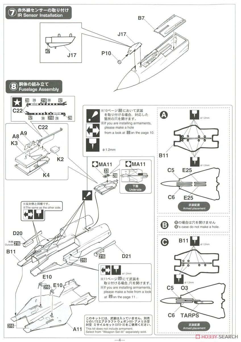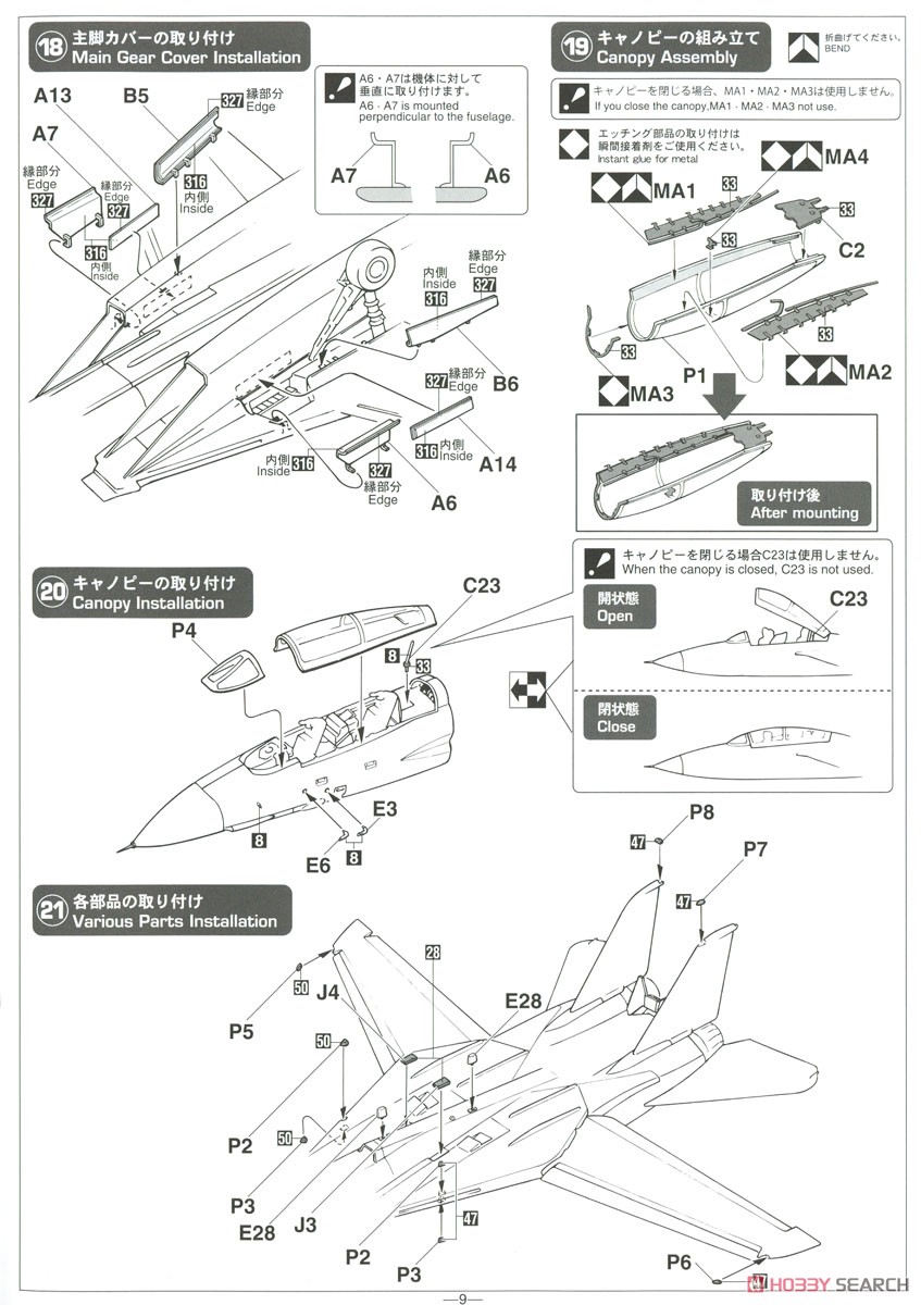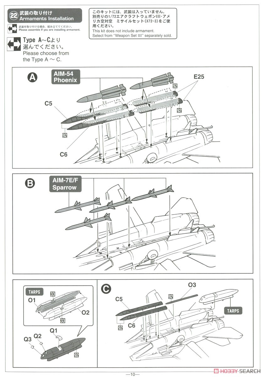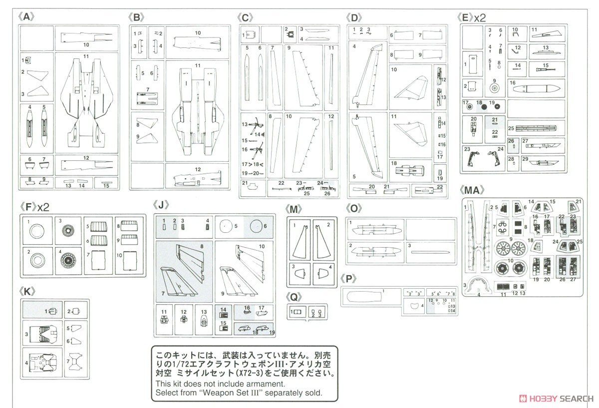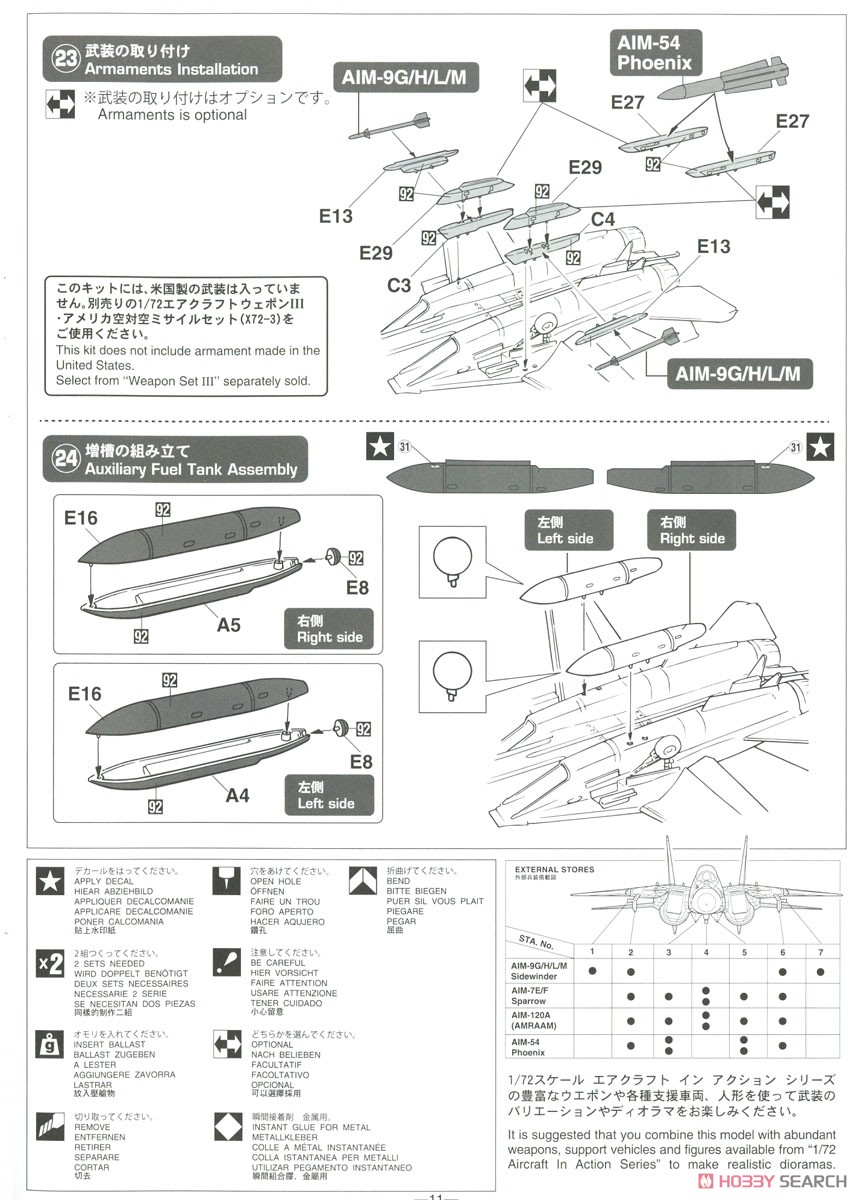 Hasegawa nous apporte un kit du F-14A Tomcat 'Black Bunny' de l'escadron 'Evaluators' de l'U.S. Navy VX-4. Les grappes sont de couleur noire. La maquette assemblée mesure 266mm de long et 271mm de large. Le kit comporte 209 pièces. M. Kato est en charge de l'illustration de l'emballage.