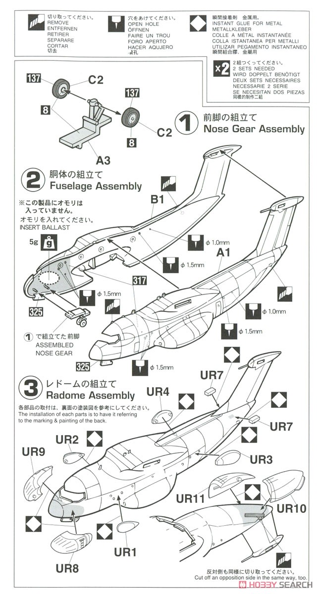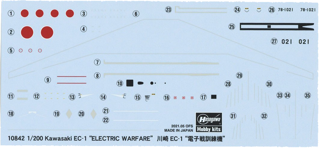 Ce kit de Hasegawa de l'avion d'entraînement à la guerre électronique Kawasaki EC-1 comprend de nouvelles pièces en résine (grand carénage d'antenne sur le nez et la queue, petit carénage d'antenne sur le côté du fuselage, cosses de paillettes en option à gauche et à droite du fuselage) pour reproduire le C modifié -1 'Ornithorynque' 201 ! L'illustration de l'emballage a été réalisée par M. Kato.
