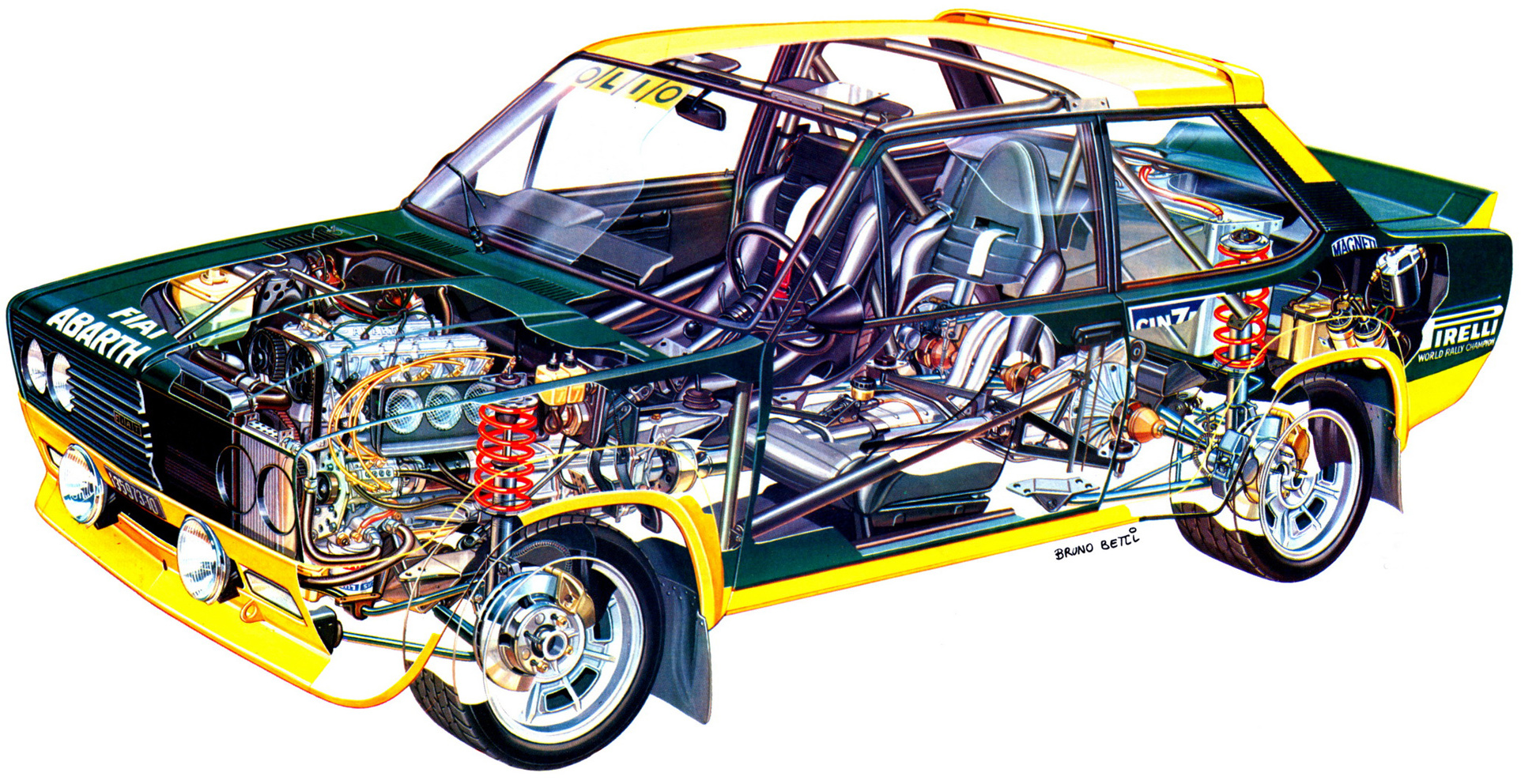 Le moteur retenu est dérivé du modèle 131 Abarth de série, un moteur Fiat 2,0 litres double arbre à cames en tête. Il est profondément modifié pour le Groupe 1 avec de plus grosses soupapes, de nouveaux arbres à cames et pistons portant le taux de compression à 10,7/1, une admission par guillotine, une injection mécanique et un allumage spécifique Magneti-Marelli qui portent la puissance à 215ch à 7'000tr/mn. Côté châssis, les ressorts sont plus durs, les amortisseurs ont une plus grande capacité d'huile, le différentiel ZF devient autobloquant avec des disques et le réservoir de carburant est déplacé pour une meilleure répartition des masses.
