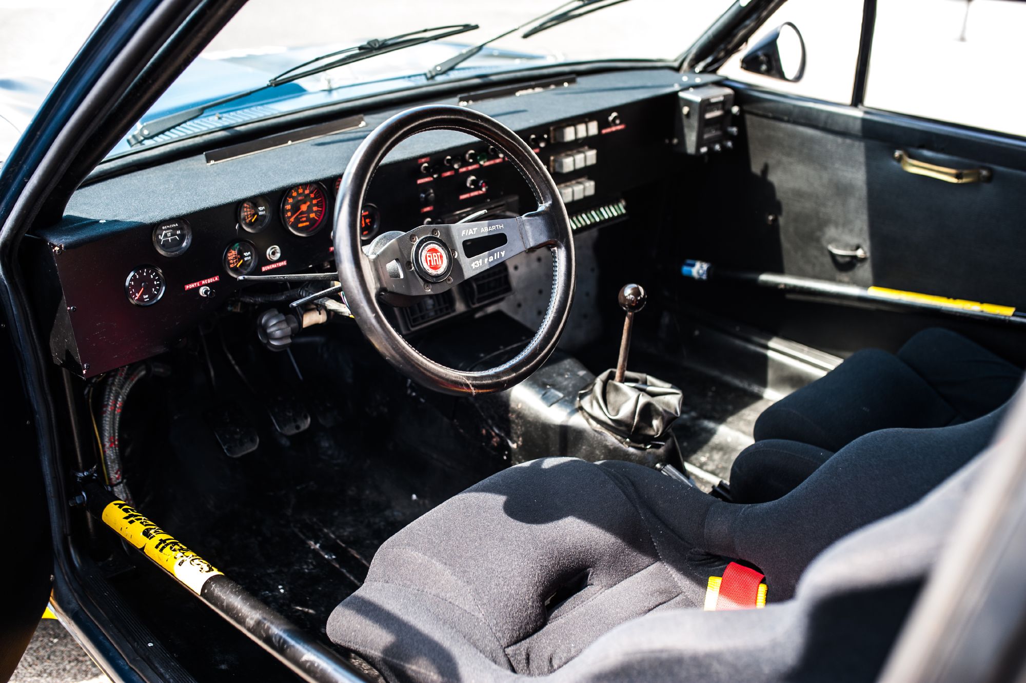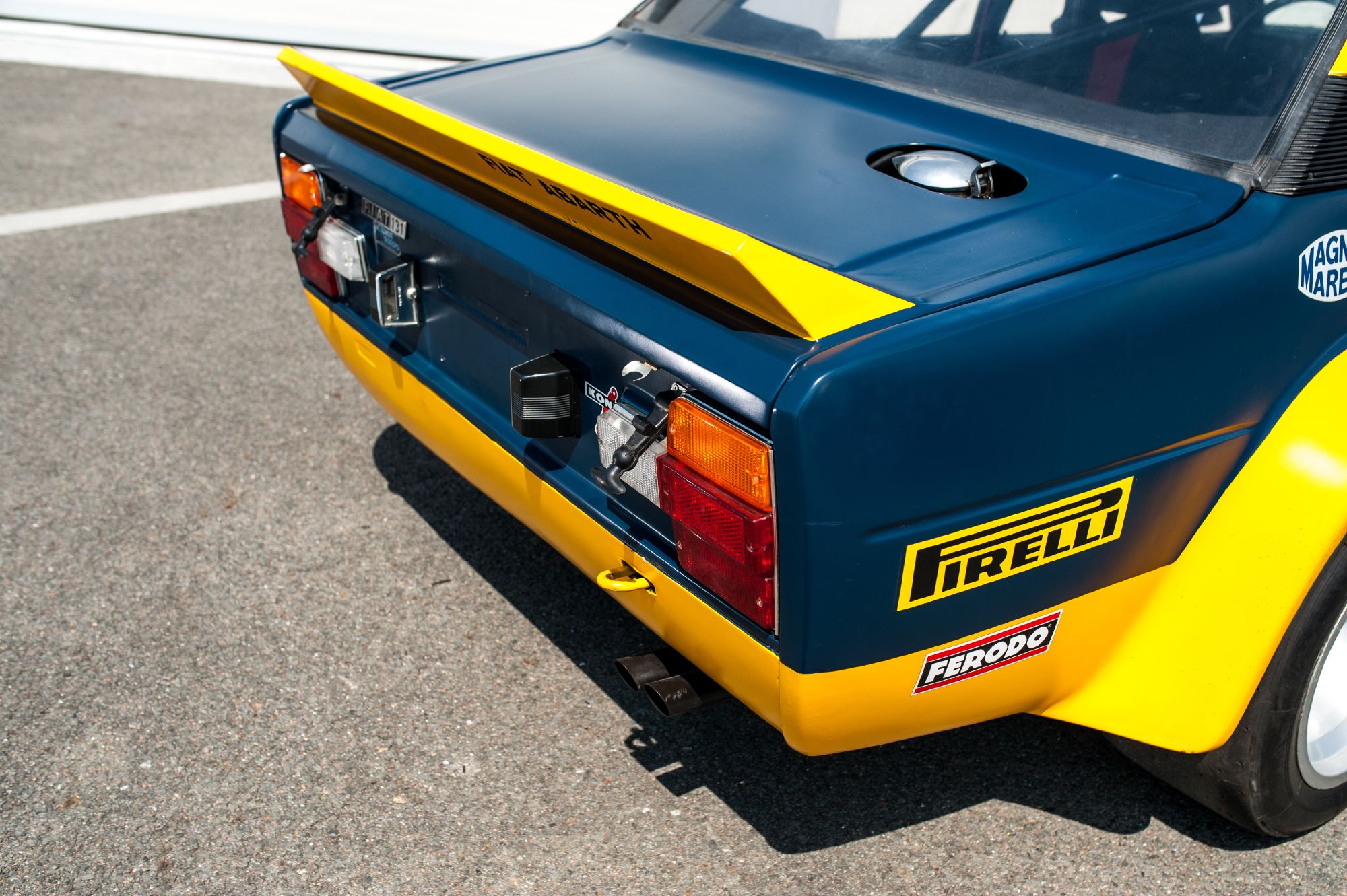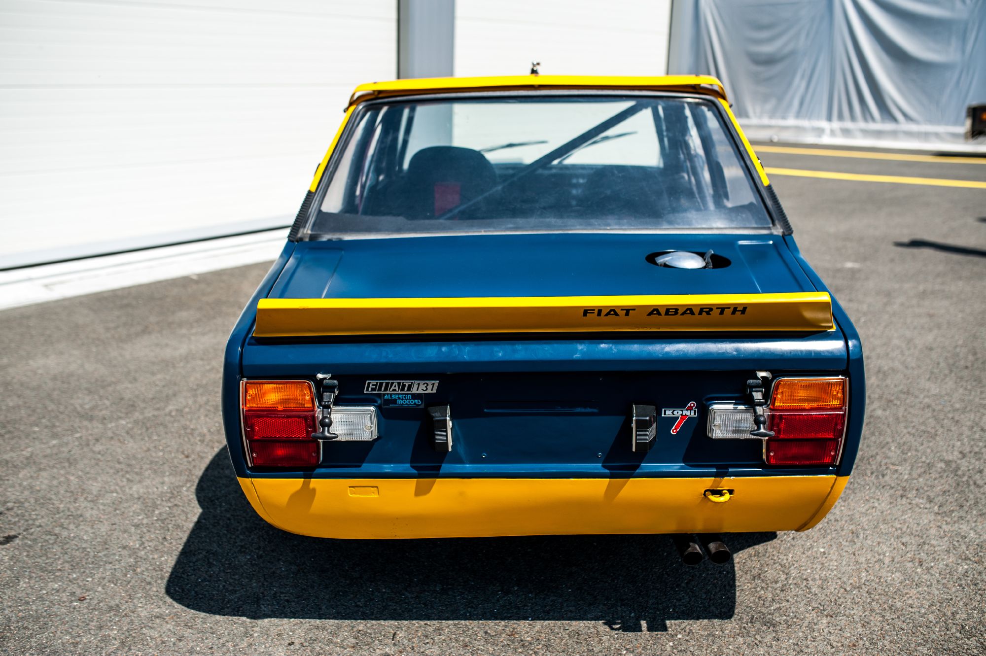 Pour la Fiat 131 Abarth Rally, la base sera la version 2 portes (première série) de la Fiat 131 avec une cure d'allègement afin de passer sous la tonne. Le coffre, les ailes élargies qui se rejoignent en un spoiler intégrant des écopes de refroidissement des freins et les passages de roues sont en résine, les portières et le toit en aluminium, les vitres latérales et de custode en plexiglas. Au passage, la voiture abandonne ses 2 pare-chocs, ce qui permet de l'alléger de 65kg.