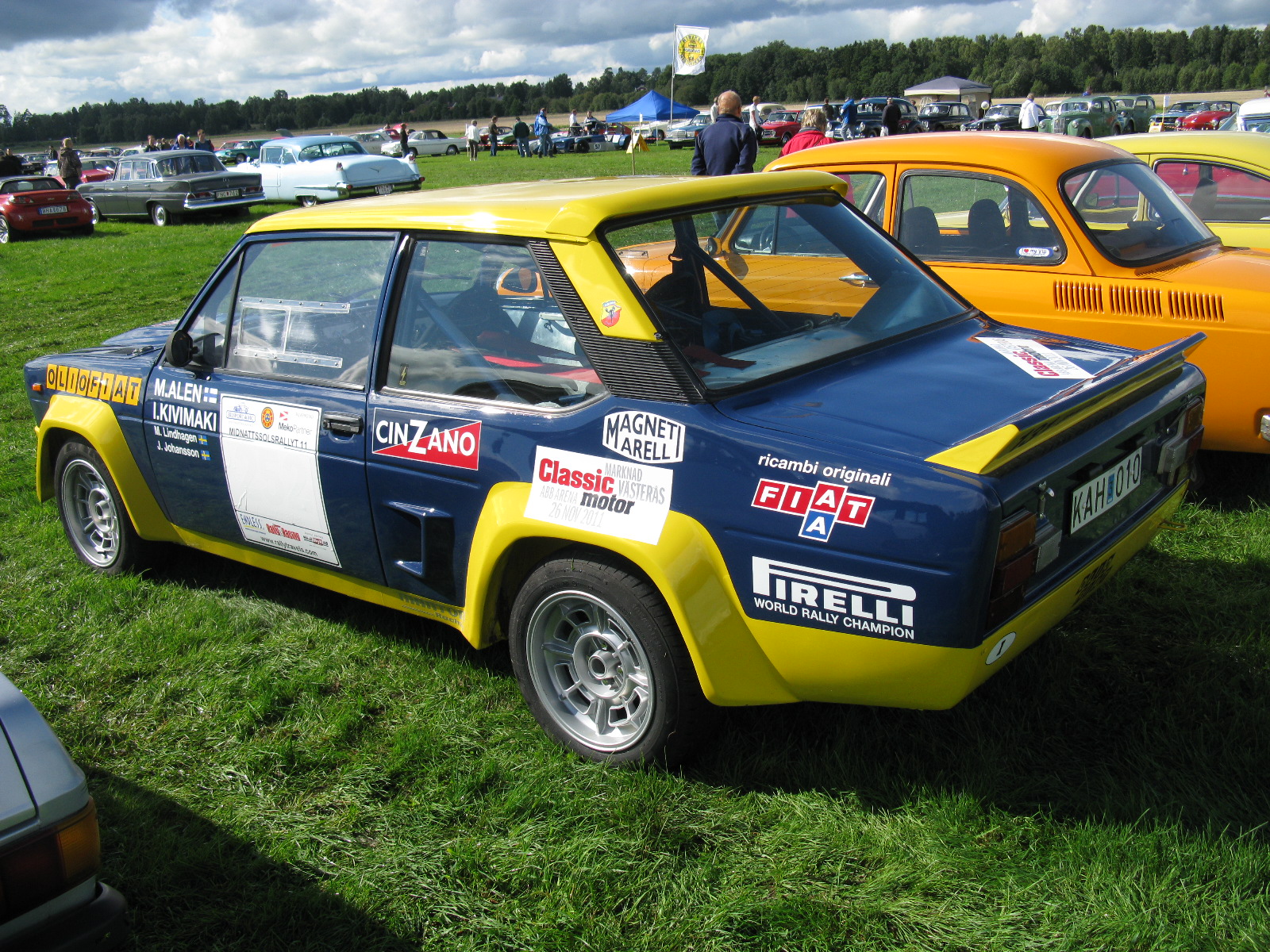 En 1976, sous les couleurs Olio Fiat et face aux Lancia Stratos HF, l'équipage Alen-Kivimaki gagne le rallye des 1000 lacs en Finlande.